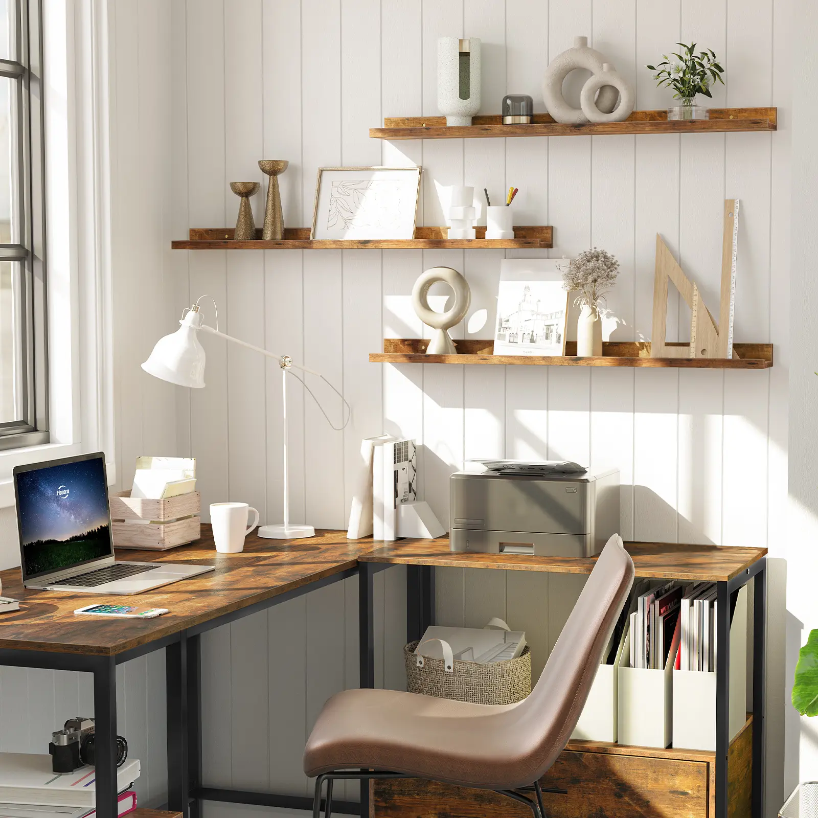 You can hang them separately in the bathroom, bedroom, kitchen, living room to display books, photos, plants, jars, bottles, toiletries, etc.