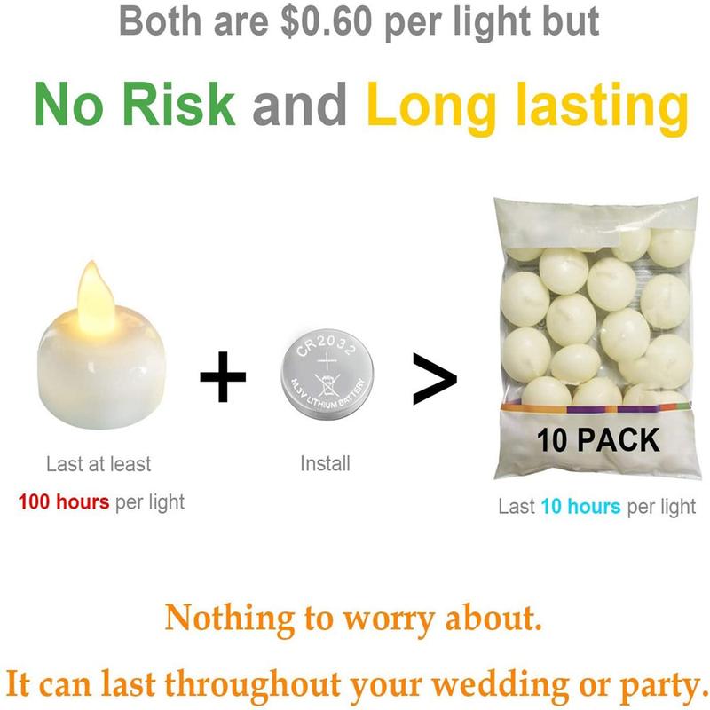 ·[ Energy saving and convenient operation ]: waterproof flameless tea lights are powered by cr2032 batteries; fun floating candles that work through the conduction of the water! As soon as they touch the water they come on and go off when they are taken out; please make sure that the bottoms are all tightened before use