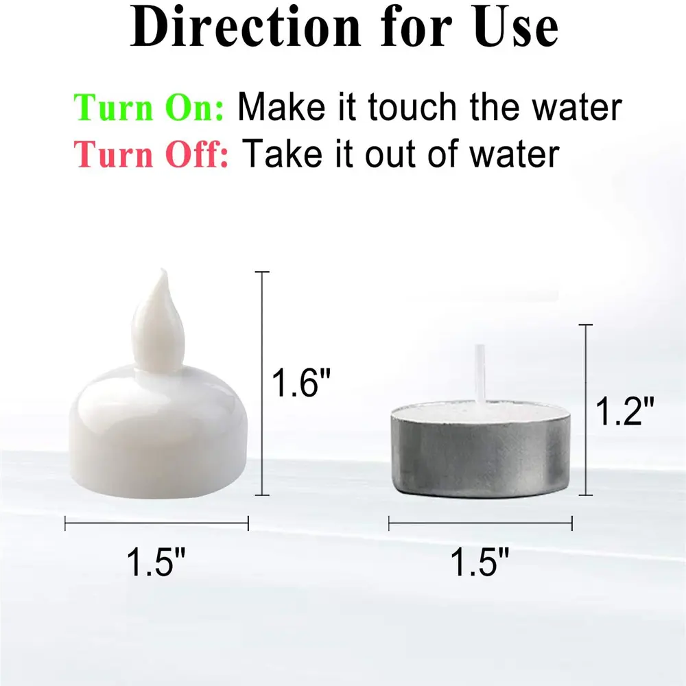 ·[ Floating on water ]: floating tealights are (D1.5" X H1.6") completely waterproof; put these warm white light led tealight candles in your pool and vase or bowls filled with water to create a warm and romantic ambiance; Package include 24 x floating tealights (batteries installed)