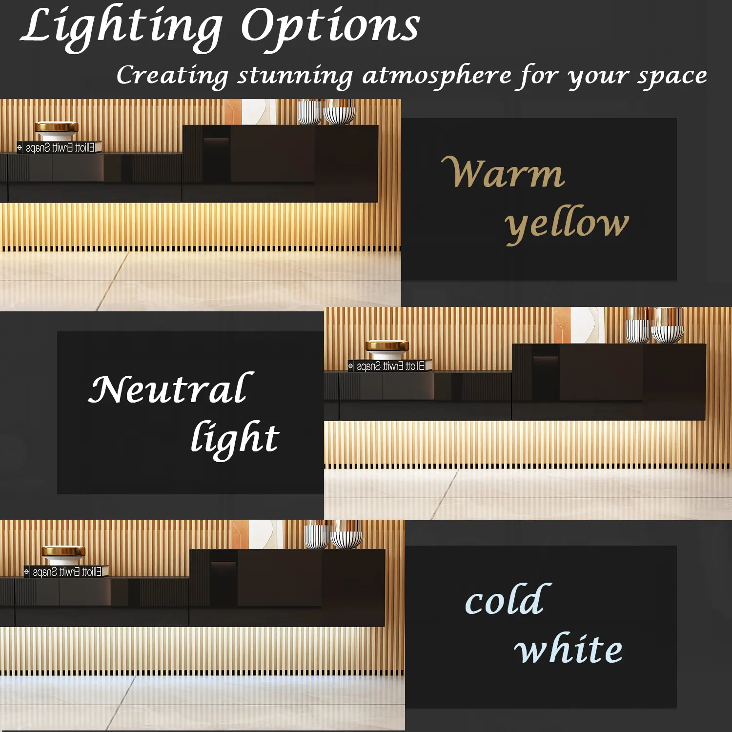 ·Lighting Options - The floating TV console features light strips and offers 3 lighting options to meet your lighting needs: cold, neutral and warm. There are 5 drawers providing enough space for your video games, photo albums, wires and so on.
