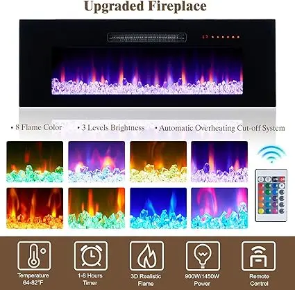 ·【Multifunctional Fireplace】Provide 8 changeable realistic flame colors & 3 levels of dimmer, temperature control, and timer setting. Max 4,800 Btu powerful output heat a room up to 400 sq. ft.