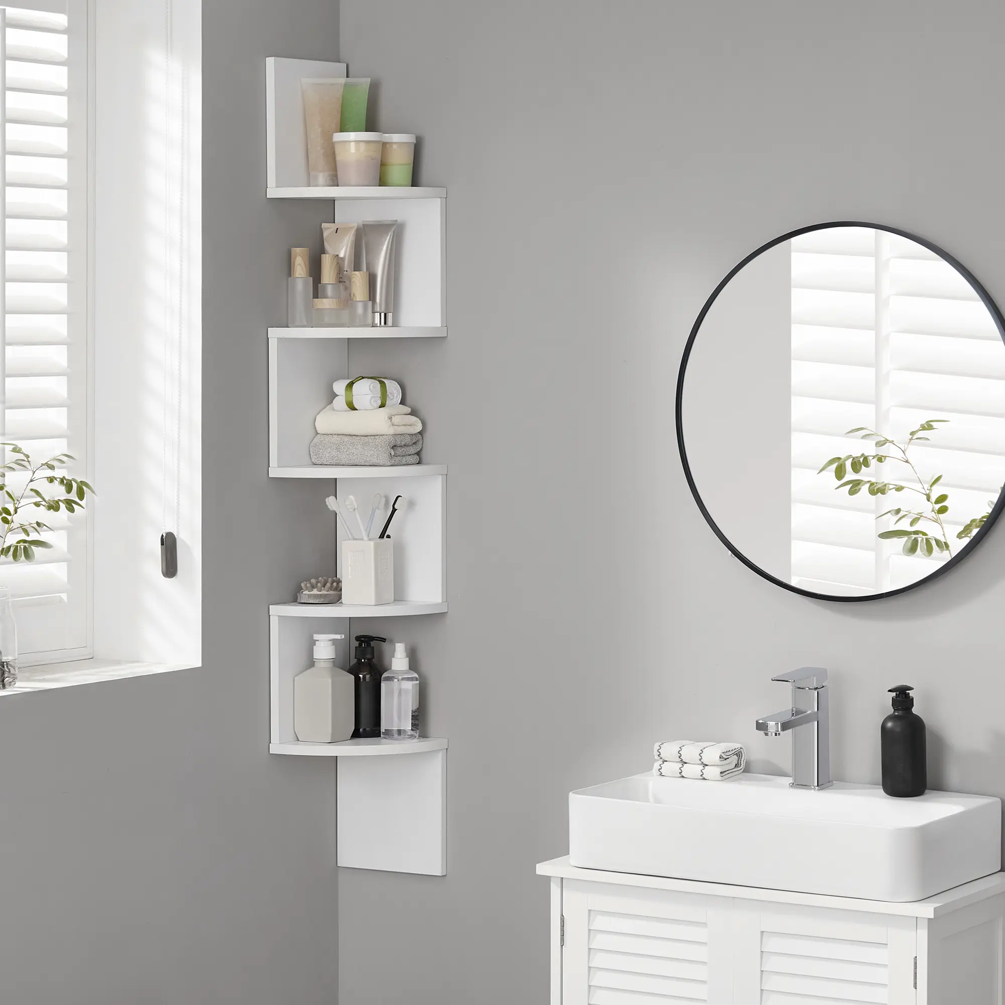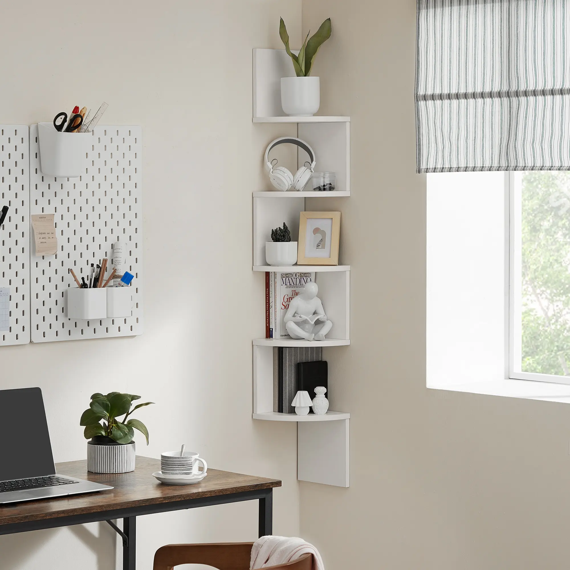 SONGMICS Corner Shelf Wall Mount, 5-Tier Floating Corner Bookshelf, Plant Shelf for Bedroom, Living Room, Bathroom, Home OfficeSONGMICS Corner Shelf Wall Mount, 5-Tier Floating Corner Bookshelf, Plant Shelf for Bedroom, Living Room, Bathroom, Home Office