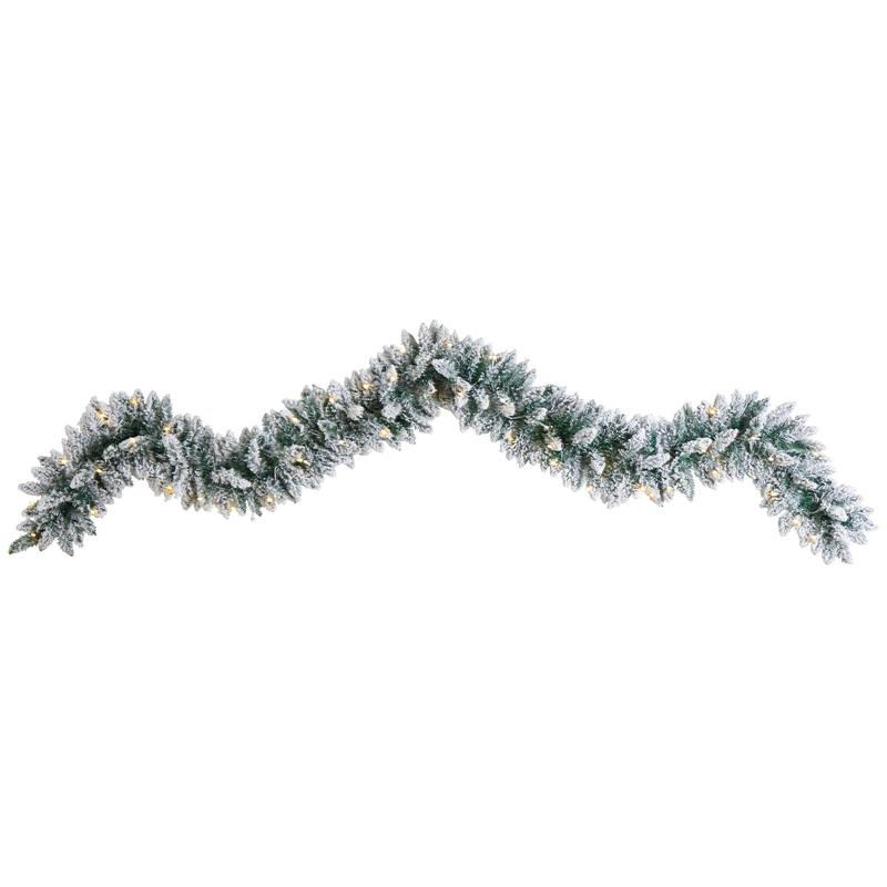 5. Nearly Natural 9' Flocked Christmas Garland wit h Lights