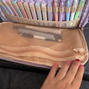 I love it!! and was so excited to receive it! The ONLY thing that was EHHH was that the markers bleed through a little but it’s not too noticeable. The bag has so much space and the side pouch for a cup is an awesome bonus.