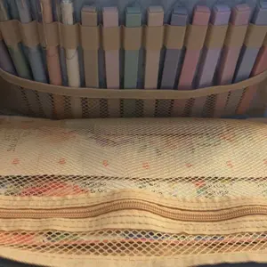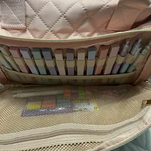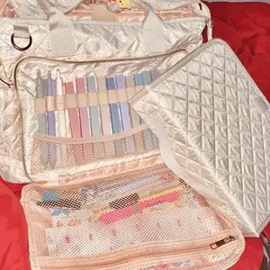 So cute! It is kind of plastic-y. I think if it was made with more of an interface for the quilting fabric, and honestly out of cotten that’d be best! Love that I can use it for my art supplies and that it came with highlighters and pens.