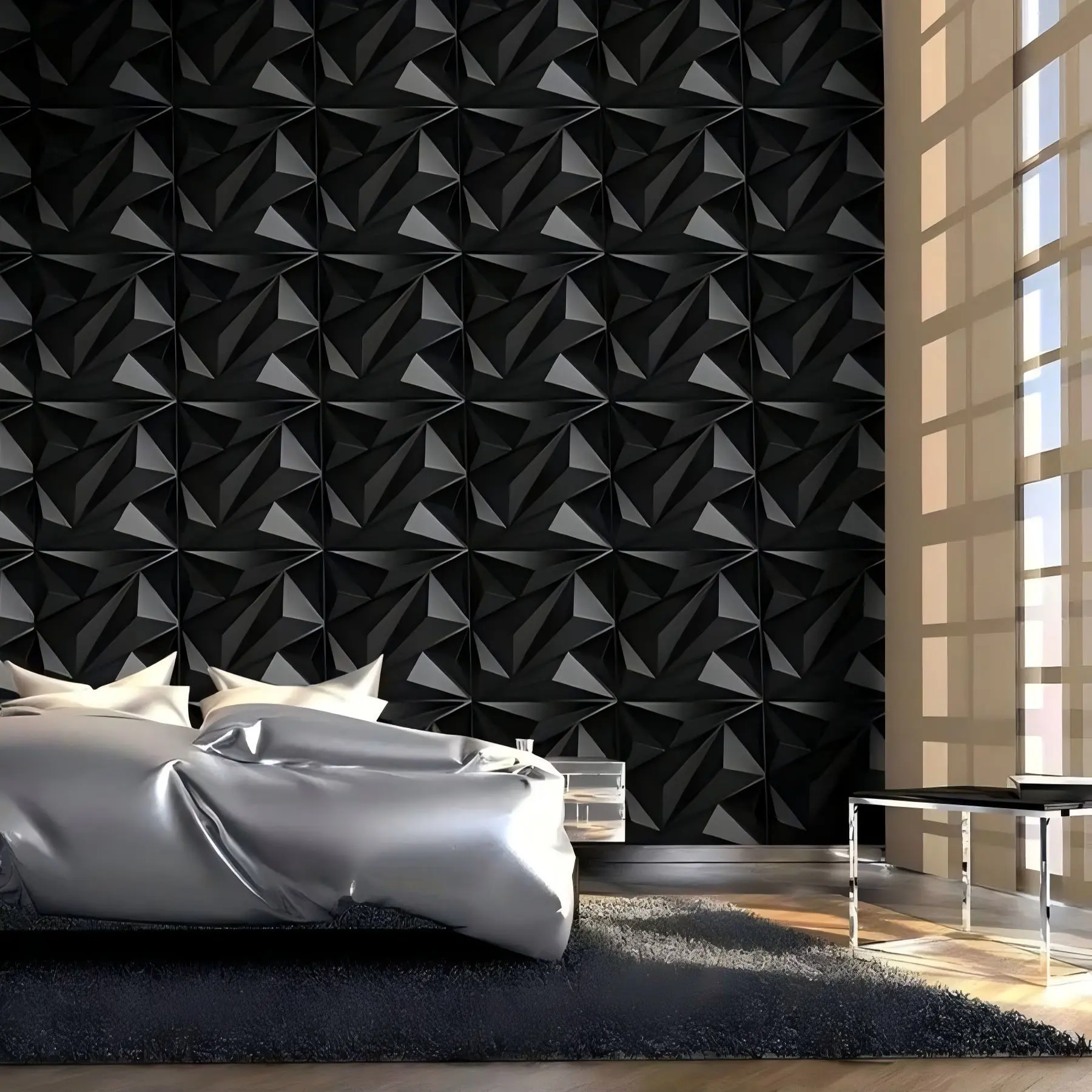 Geometric patterns add depth and visual interest, creating a warmer ambiance. These stylish panels transform your room's atmosphere effortlessly. Perfect for kitchens, dining areas, TV accent walls, and more.