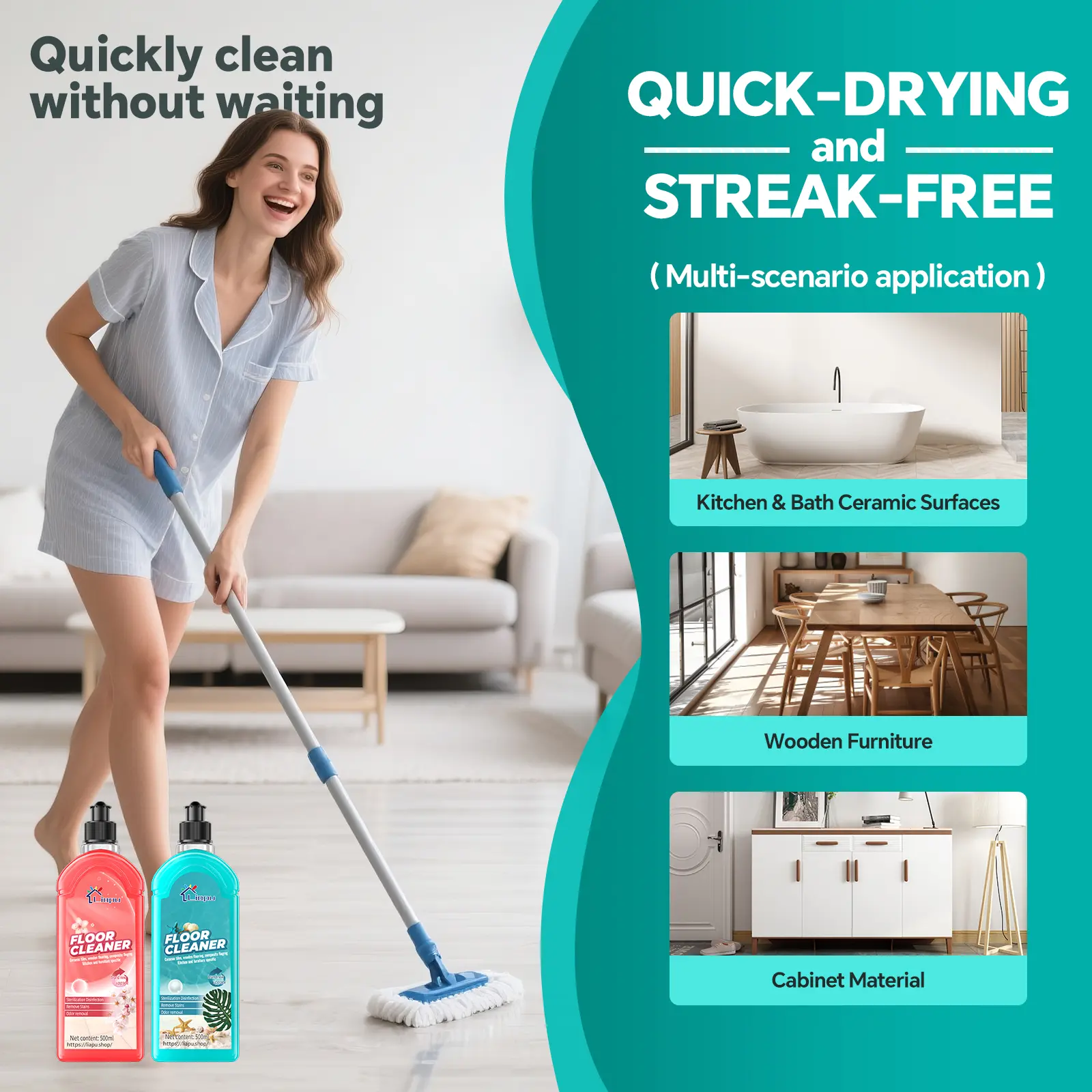 After using the floor cleaner, the texture of the floor becomes smoother without leaving any marks or water stains. Add a little detergent every time you mop the floor, and it will be clean immediately, and there will be a light fragrance.