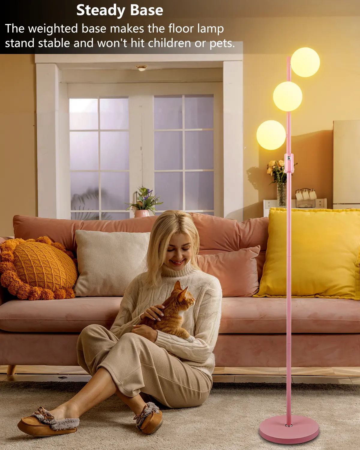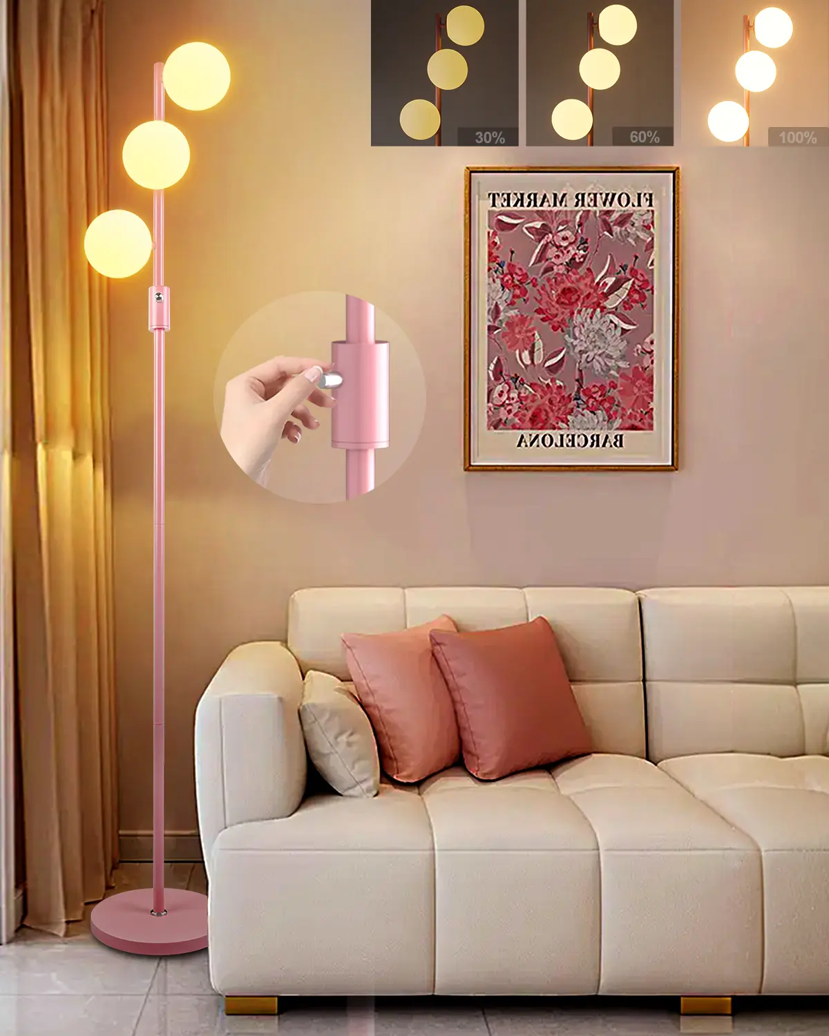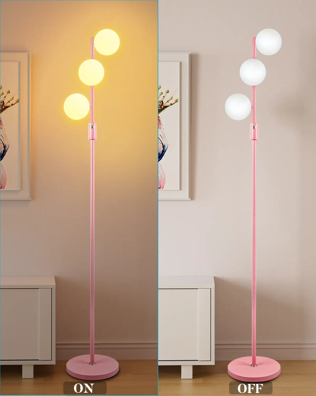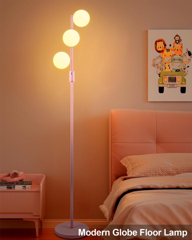 5. Lightdot Dimmable (Brightness Adjustable) Globe Floor Lamp, Pink Pole Standing Lamps with 3PCS 3000K G9 Bulbs, Mid Century Modern Floor Lamp for Living Room