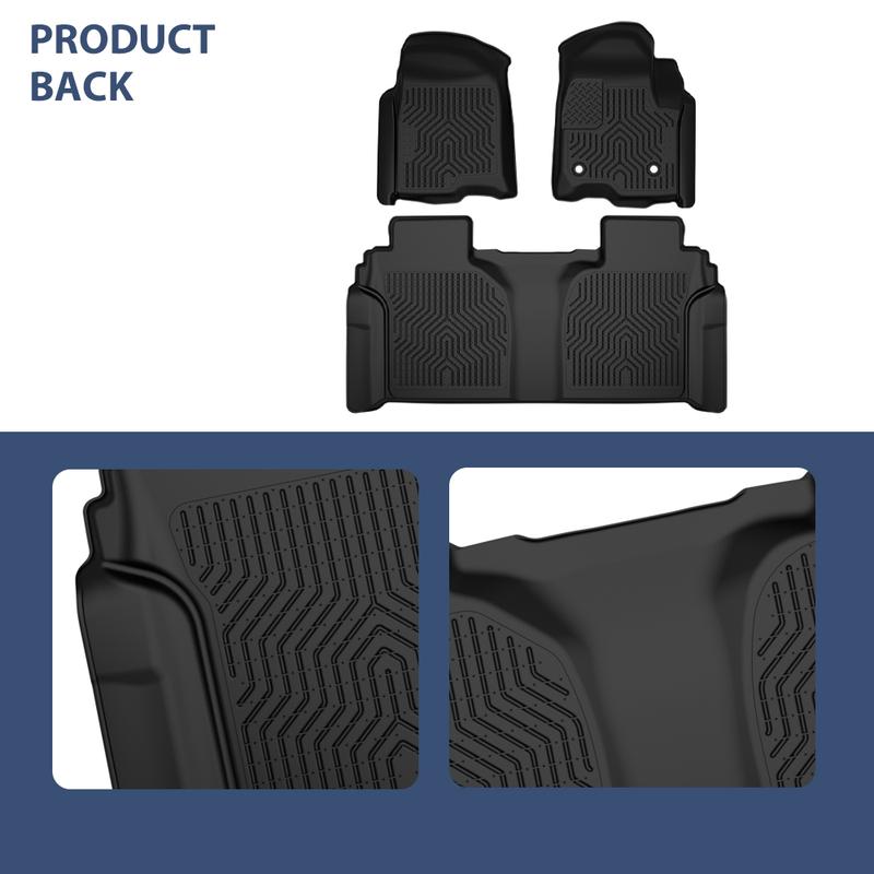 The foot pads are waterproof, have excellent crease recovery, minimize tread marks and absorb impact, and withstand any weather conditions while protecting your vehicle from spills, debris, rain, snow and dirt.