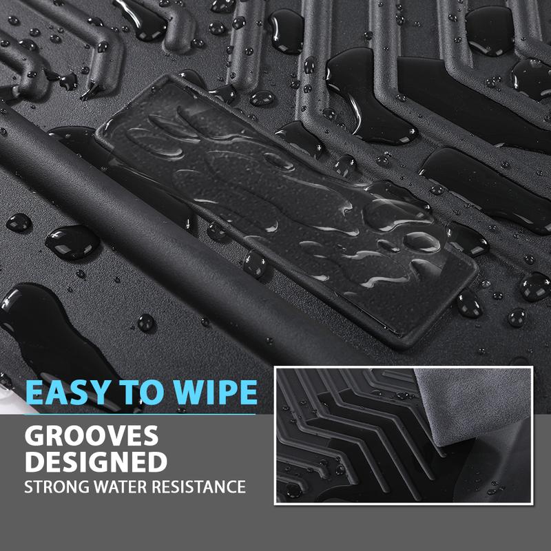 Protection:Floor Mats have excellent crease recovery to minimize wear and tear from marks and impacts, and are waterproof to prevent leakage from rain, snow, debris and dirt.