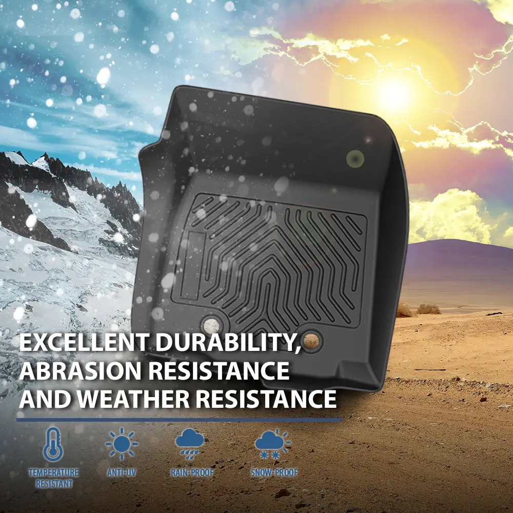 Our floor liners are made of upgraded TPE materials that do not produce unpleasant odors even in extremely hot weather. High-strength TPE materials not only have excellent feel and wear resistance, but also remain elastic even in cold weather.