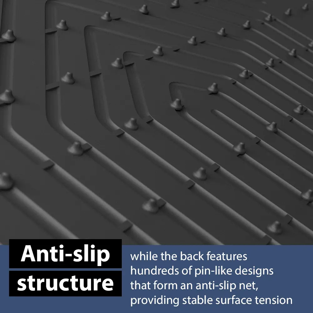 The edge of the floor liner is raised, deep grooves, and the coverage is higher, even in wet conditions, the grip of the foot pad is strong, and it is not easy to move, effectively preventing the mat from sliding.