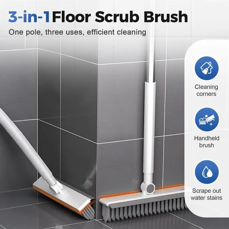 ·【Adjustable Long Handle for Versatility】Adjustable handle cleaning brush includes 3 poles, allowing the length to extend from 27.6 inches to 57 inches. Both adults and children can easily use this multifunctional household cleaning brush according to their needs.