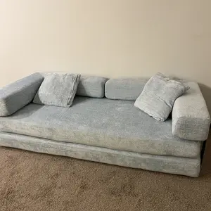 Such a nice baby blue colour and it’s firm but comfortable to sit on as a sofa, or lay on as a bed. Very nice! Matches the picture and opens itself out easily. 🧊