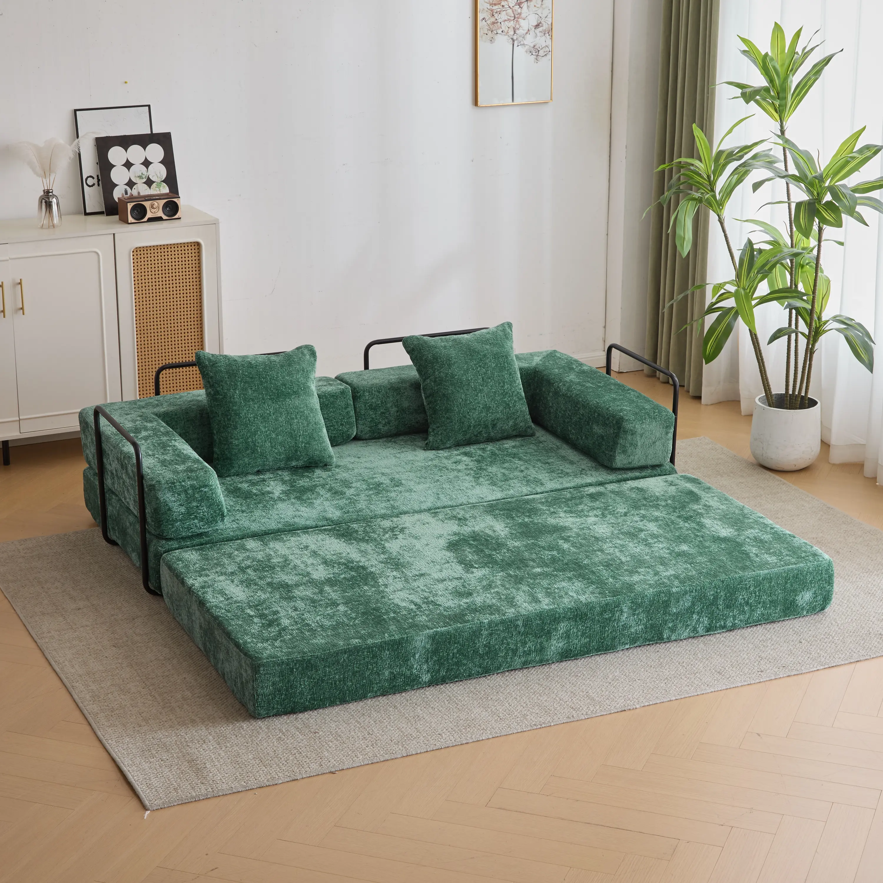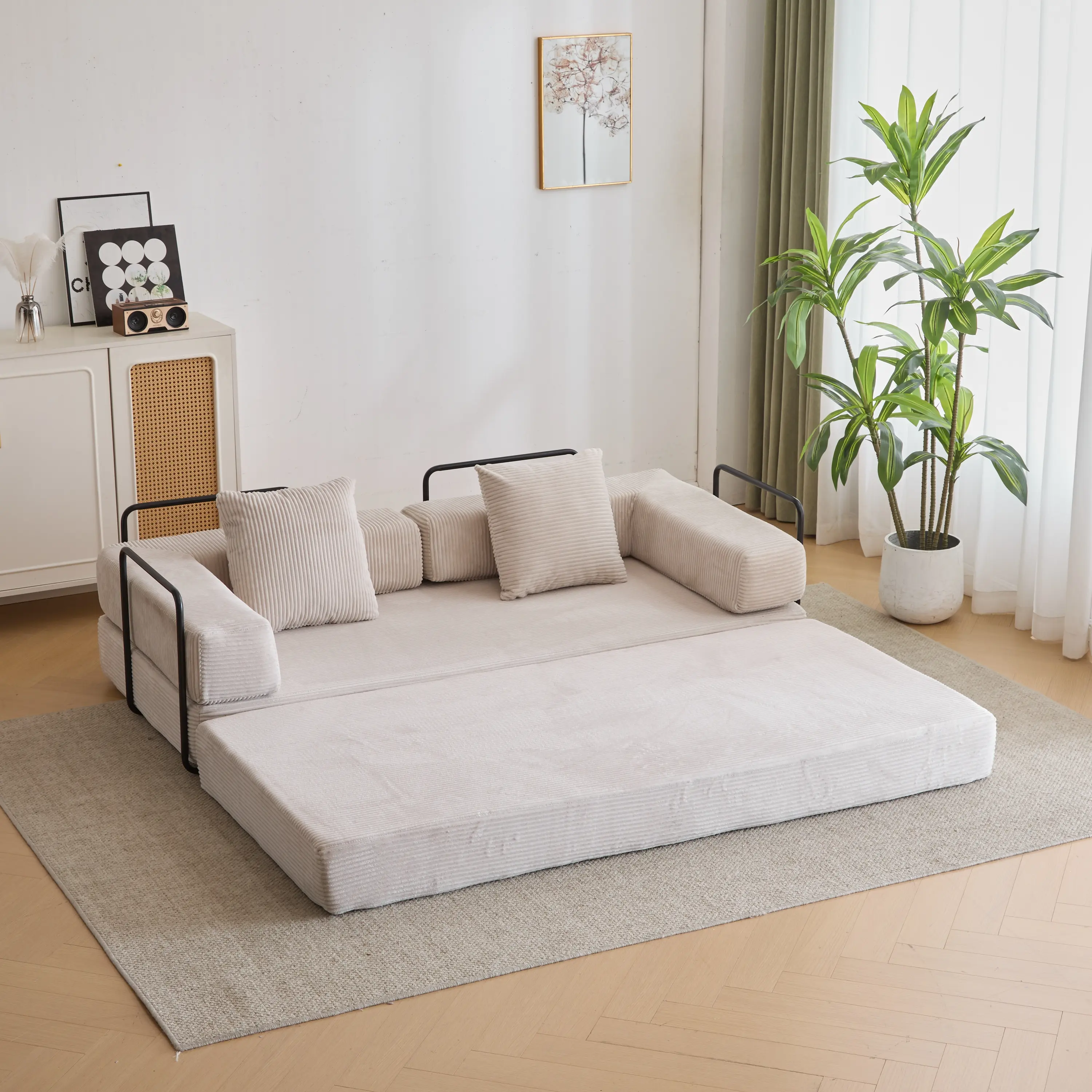 Love it. Great color. Perfect for a small apartment, spare room, kids room, play room or game room. The couch comfort is similar to a stiff couch IKEA product. But the mattress are comfortable to lay on!
