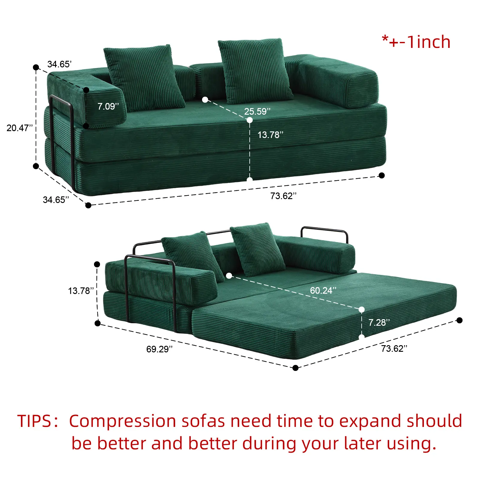 The sofa is great, but the backrest is slightly damaged due to being compressed too tightly.