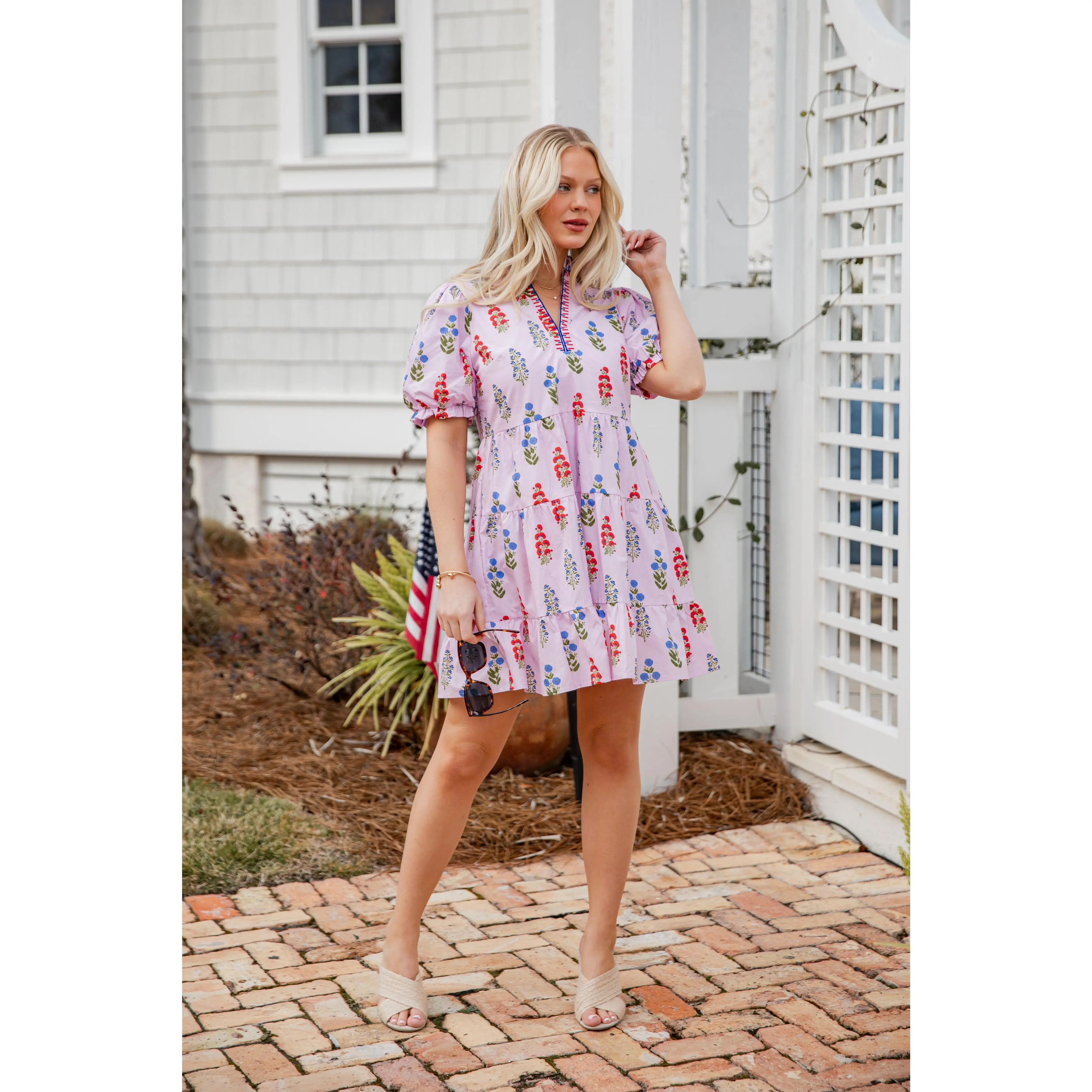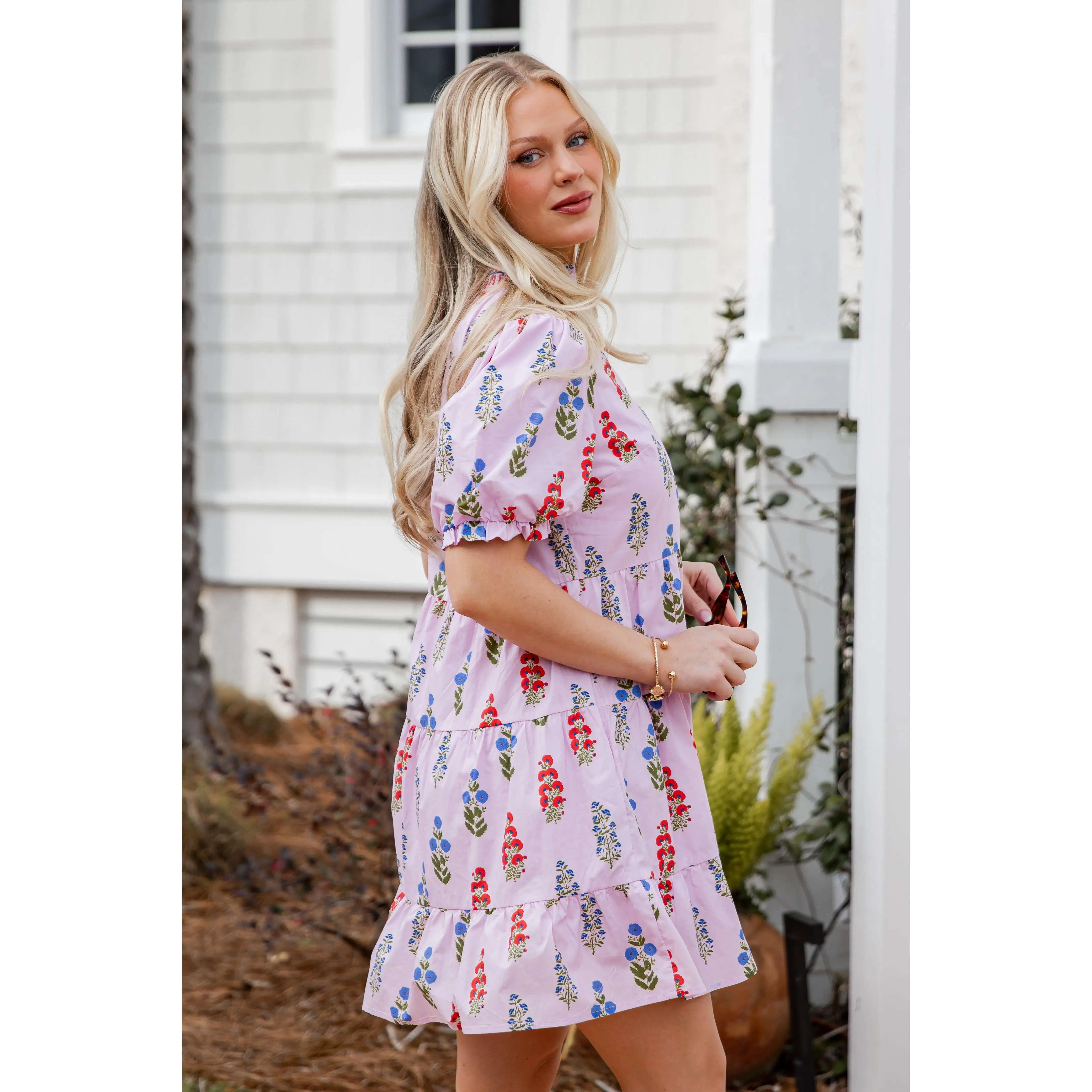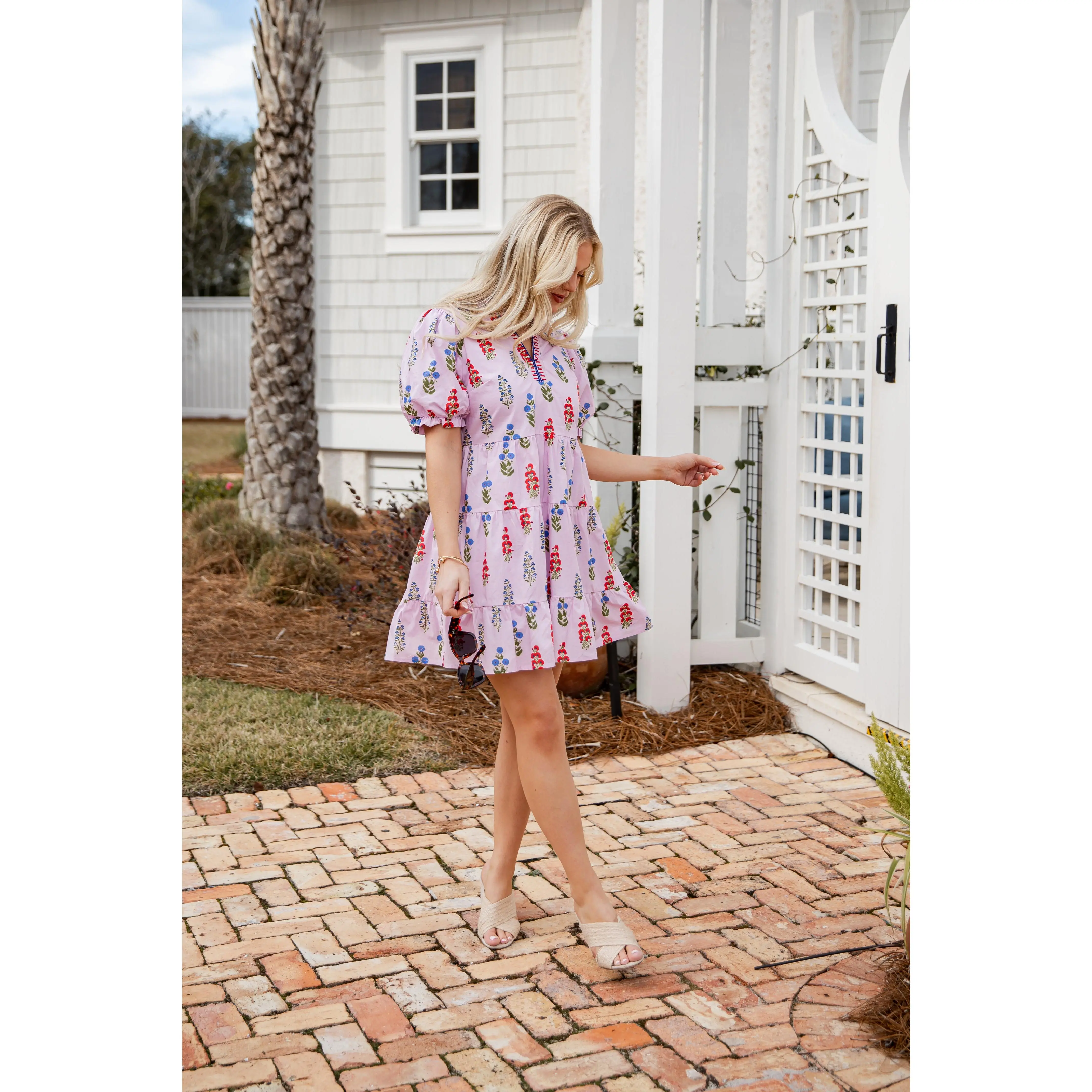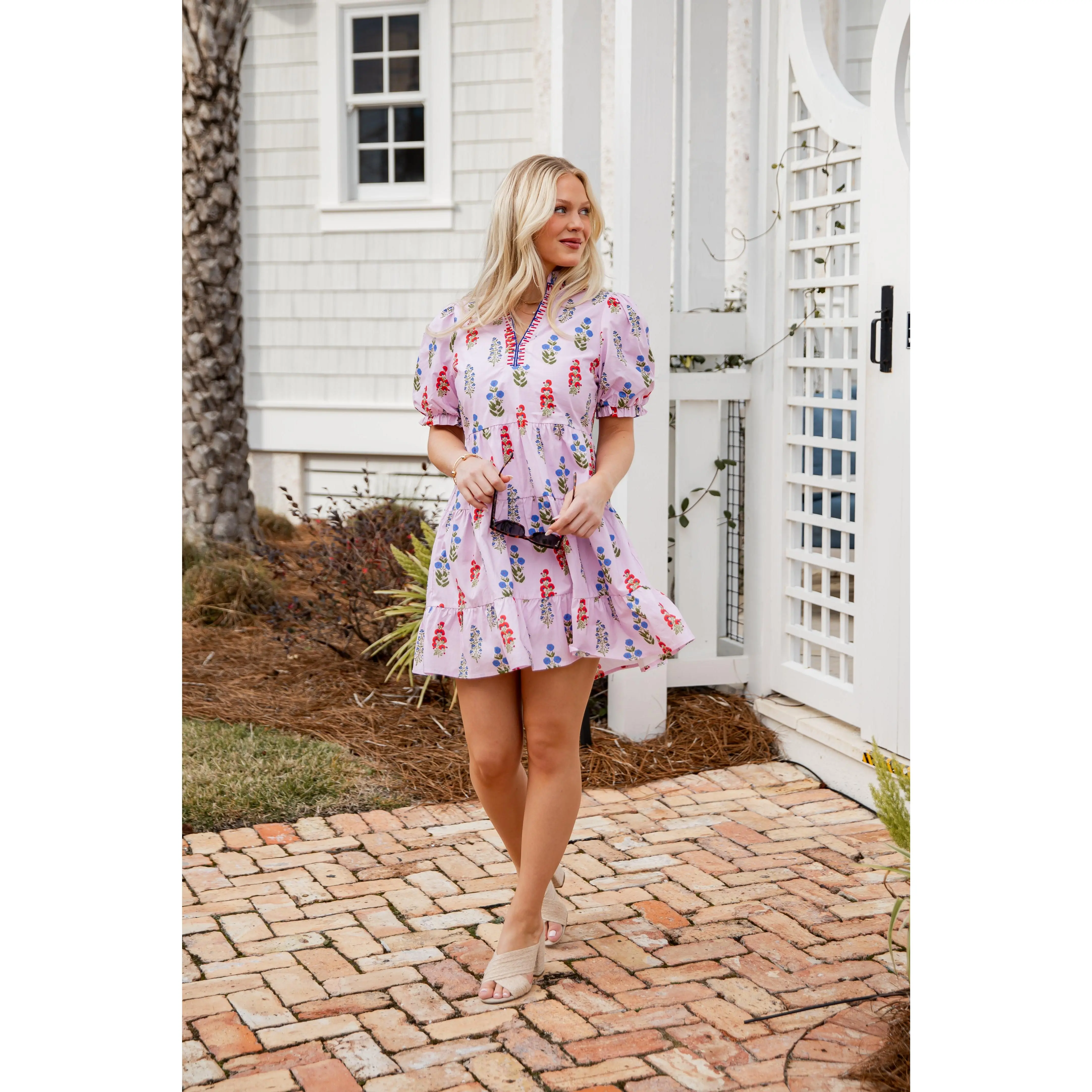 This Flora Lavender Babydoll Mini Dress features a romantic floral print with a soft, airy feel. Designed with a relaxed babydoll silhouette and subtle puff sleeves, it offers an easy, flattering fit that’s perfect for everyday wear. The lightweight fabric keeps it breathable and comfortable, making it ideal for warm-weather outings. Style it with sandals for a casual look or elevate it with wedges and gold jewelry.