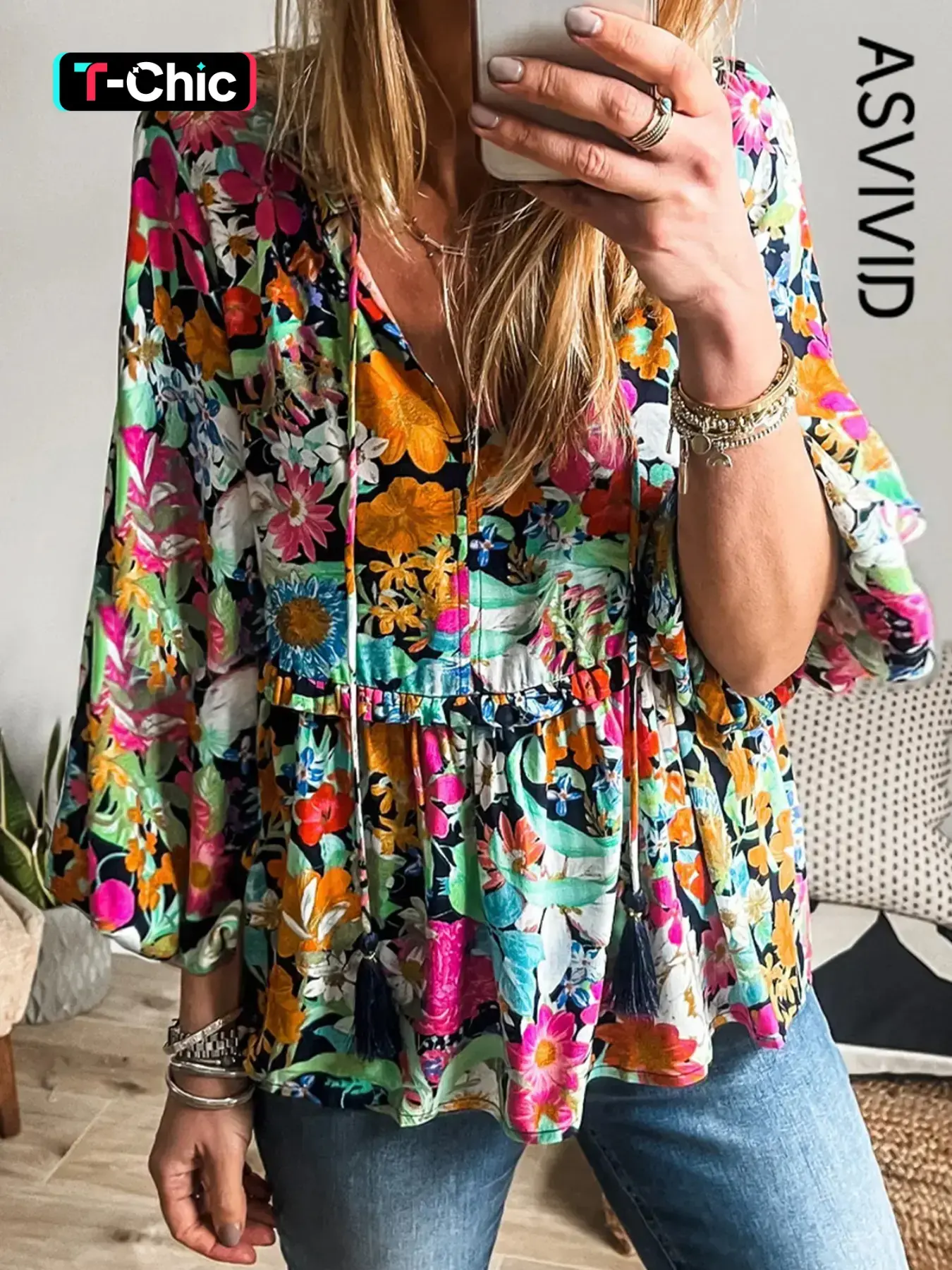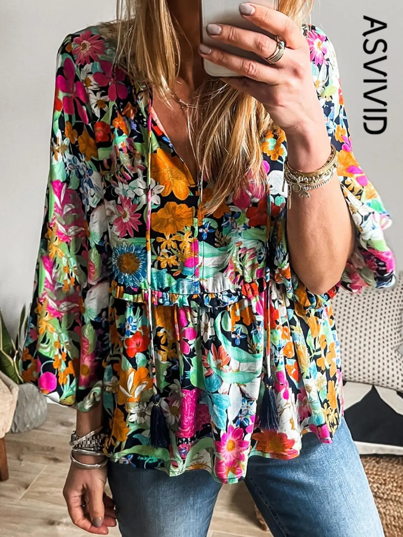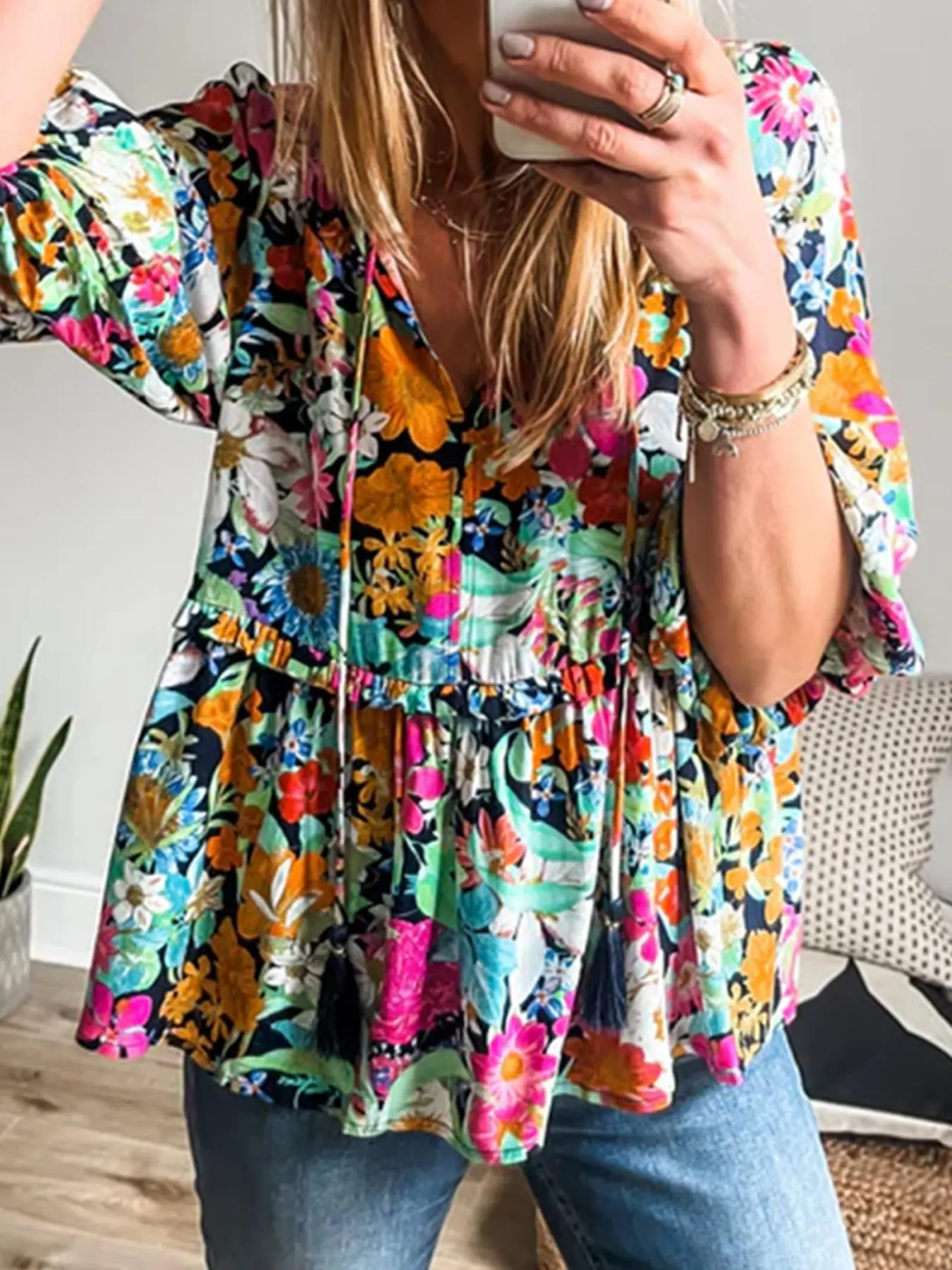 ·This floral blouse provides a fresh and stylish look