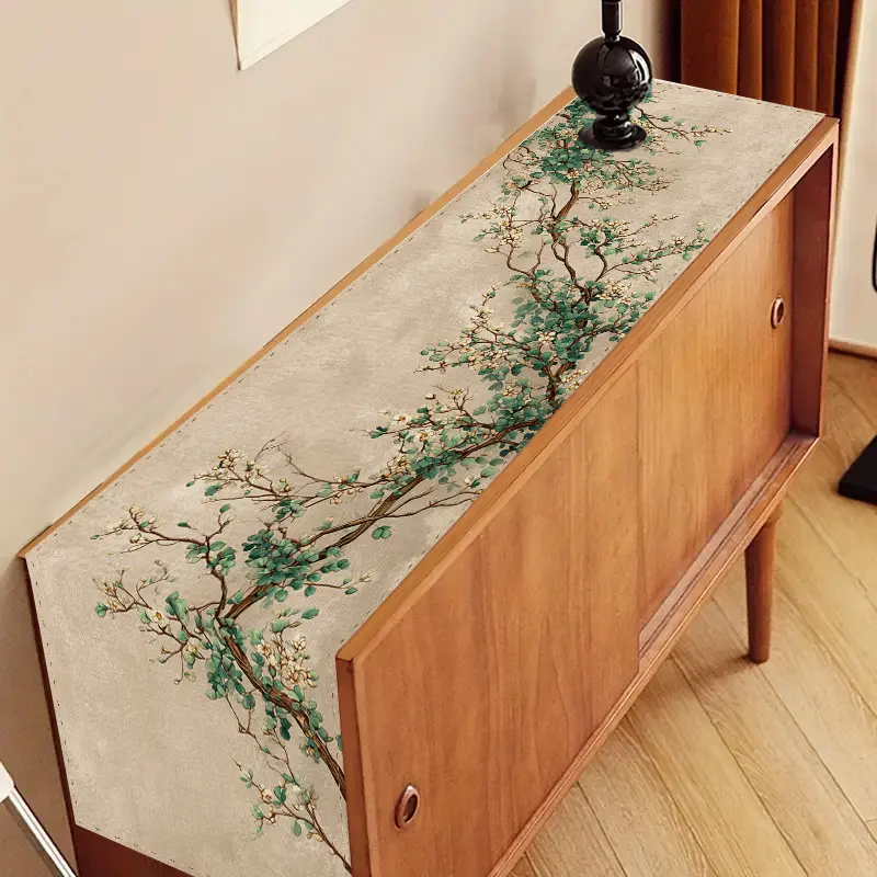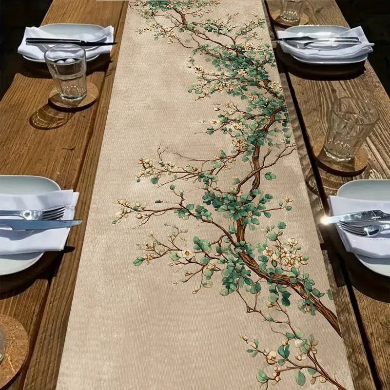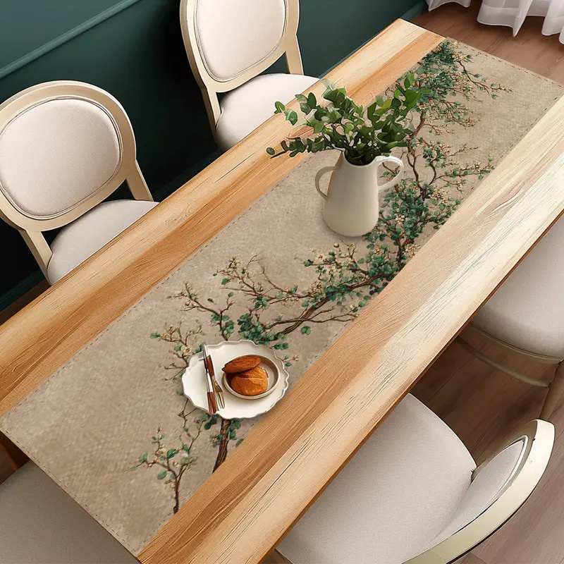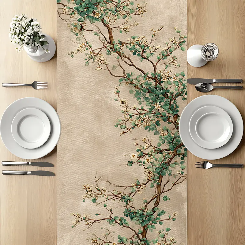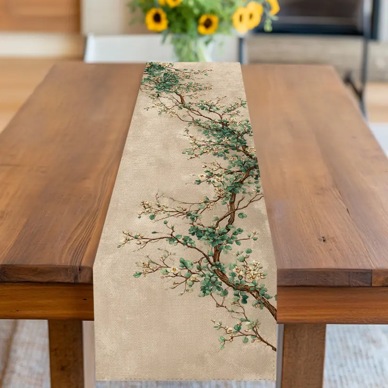 Table Runner Table Cover Floral Branch Design with Blossoms Neutral Tone for Spring Summer Birthday Wedding Anniversary Home Restaurant Cafe Kitchen Dining Table Event Styling Picnic