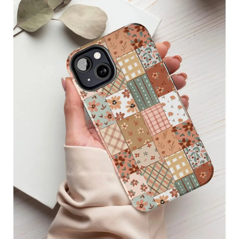 This beautifully patterned floral and checkered phone case is a durable 2-in-1 protector for iPhone 17/16/15/14/13/12/11 Pro Max/Plus/Pro and Galaxy S25/S24/S23 Ultra. Durable, stylish, and protective, it makes a perfect birthday gift for a friend.