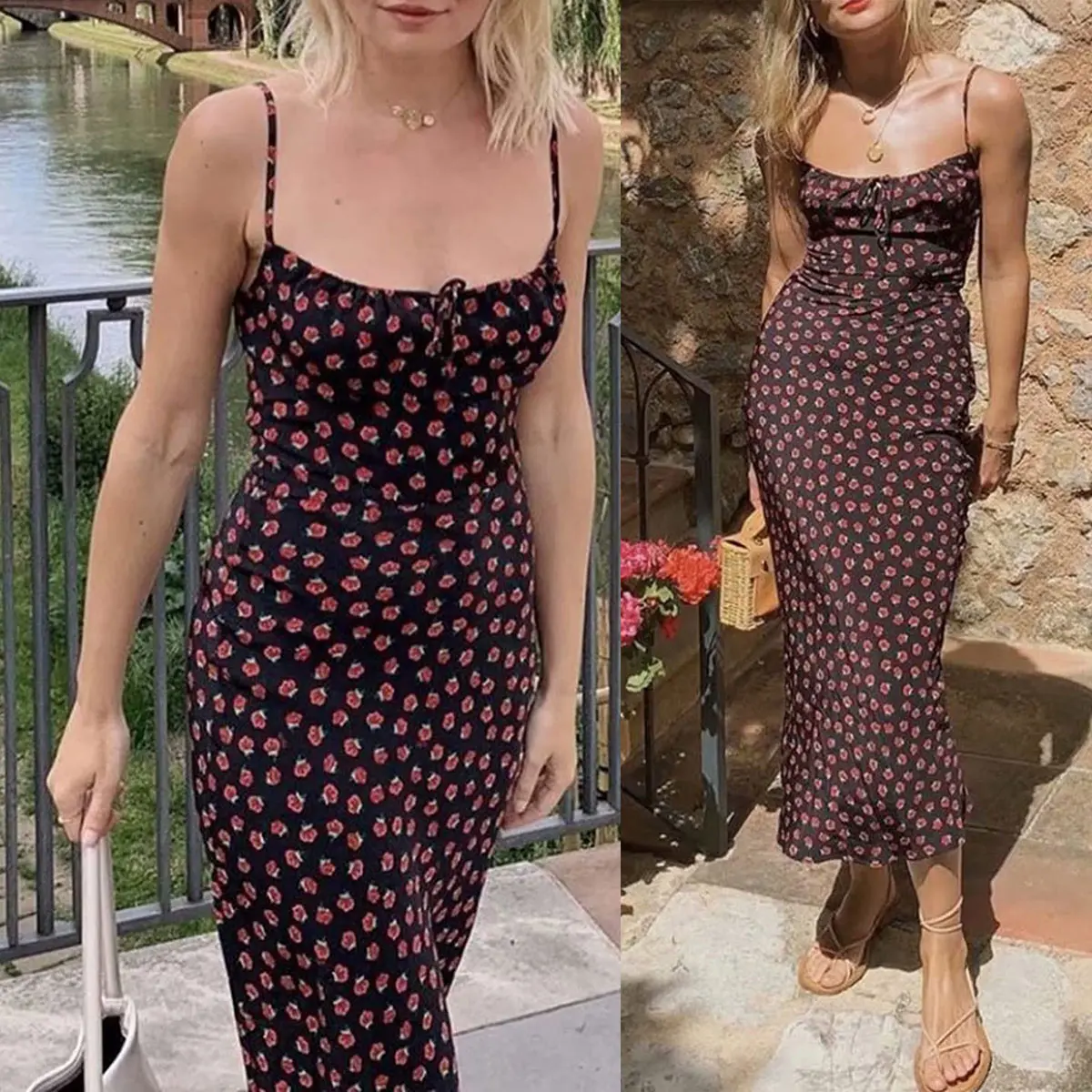 Summer dresses for women 2025, omoone dress, womens floral dress, midi dresses for women, floral spaghetti strap dress, square dress, y2k dresses, yellow dress, silk dress, 90s dresses for women, black dress, slip dress
