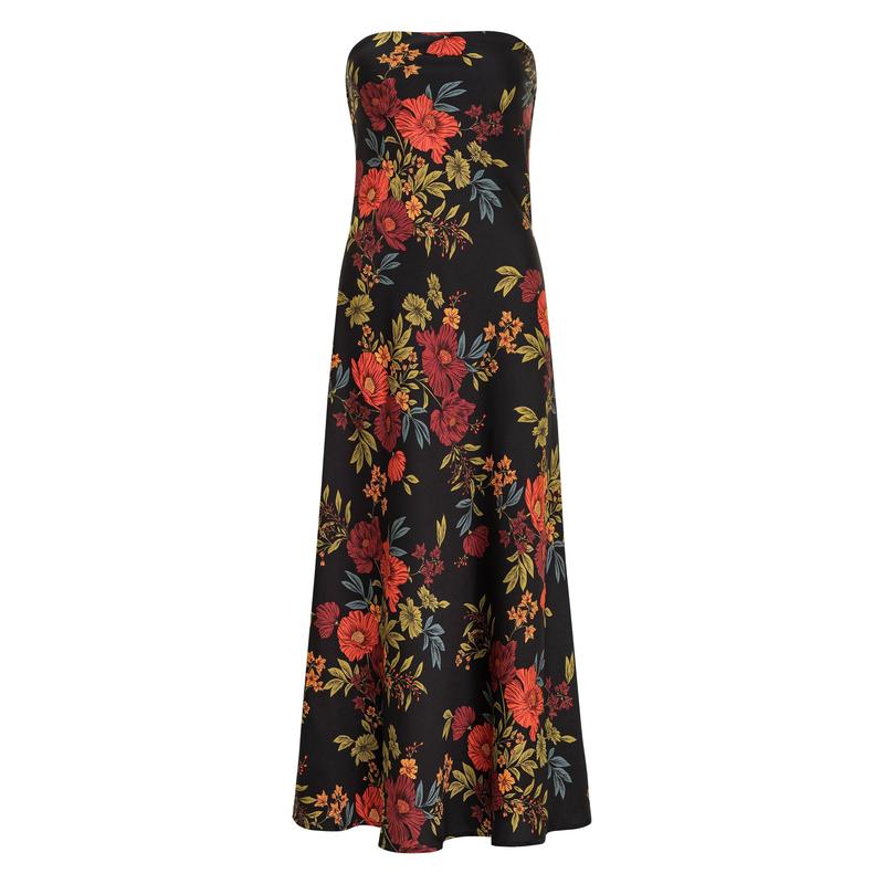 Natalia Black Floral Strapless Maxi Dress