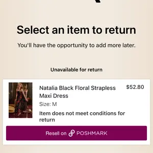 They do NOT allow returns despite saying so on multiple pages, so make sure you get your correct size through THEIR measurements or be positive you want the dress. You will be out $55 and prompted to “sell on poshmark”