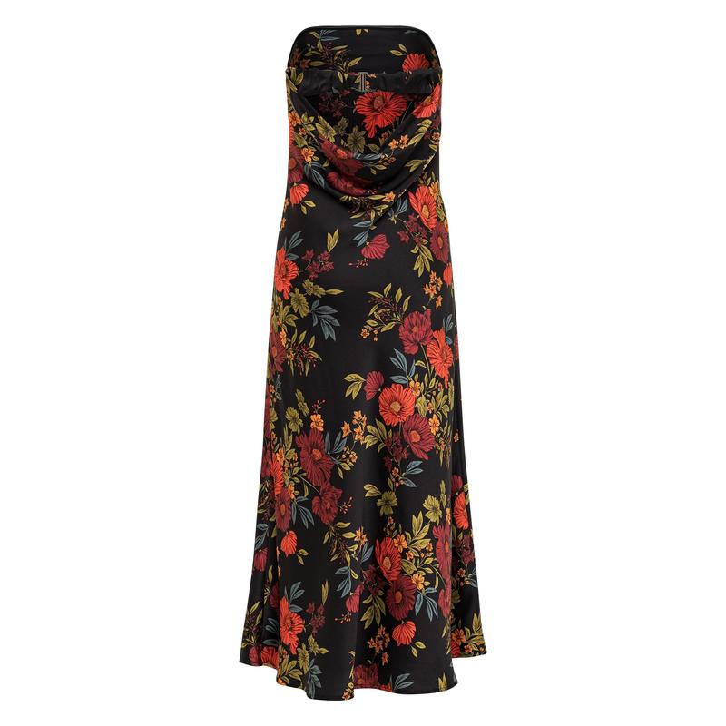 5. Natalia Black Floral Strapless Maxi Dress