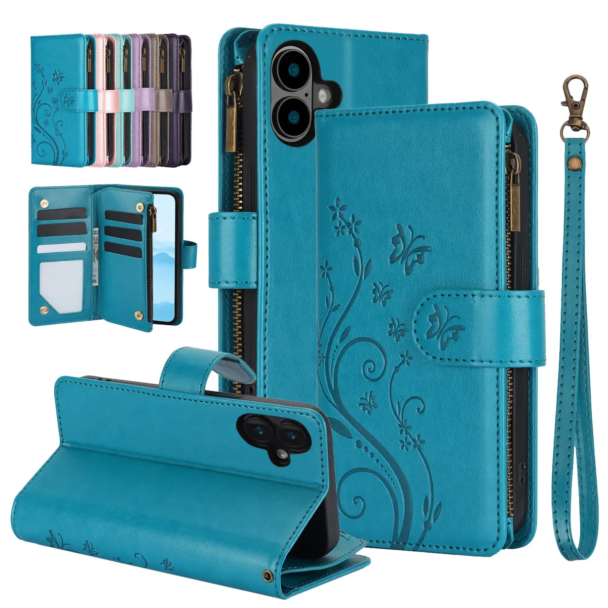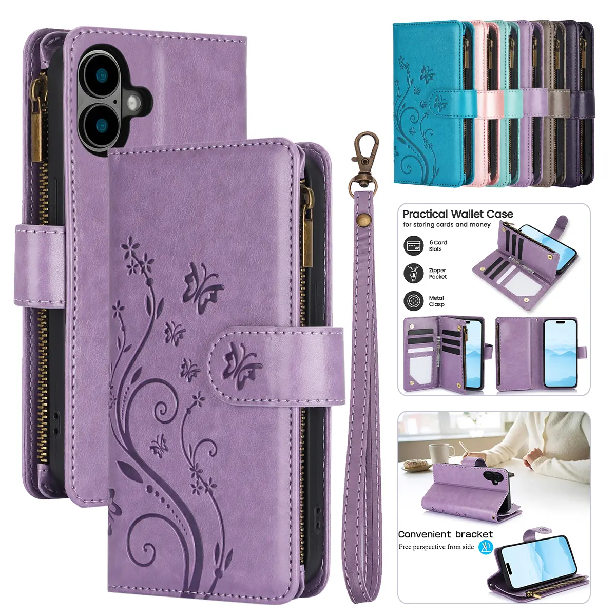 šø Elegant Floral Embossed Butterfly Wallet Phone Case