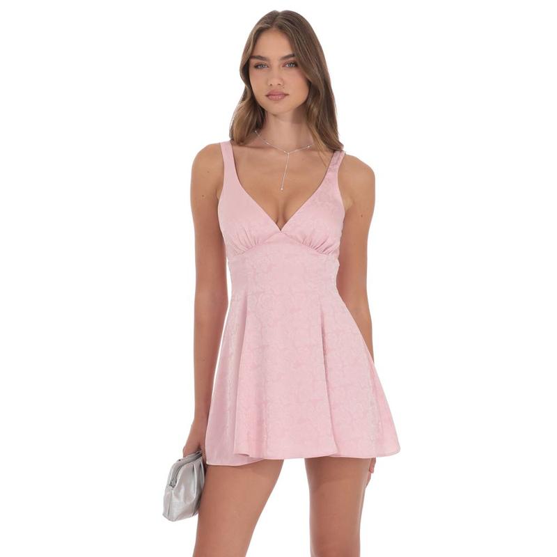 5. Floral Jacquard Bow Tie Dress in Dusty Pink