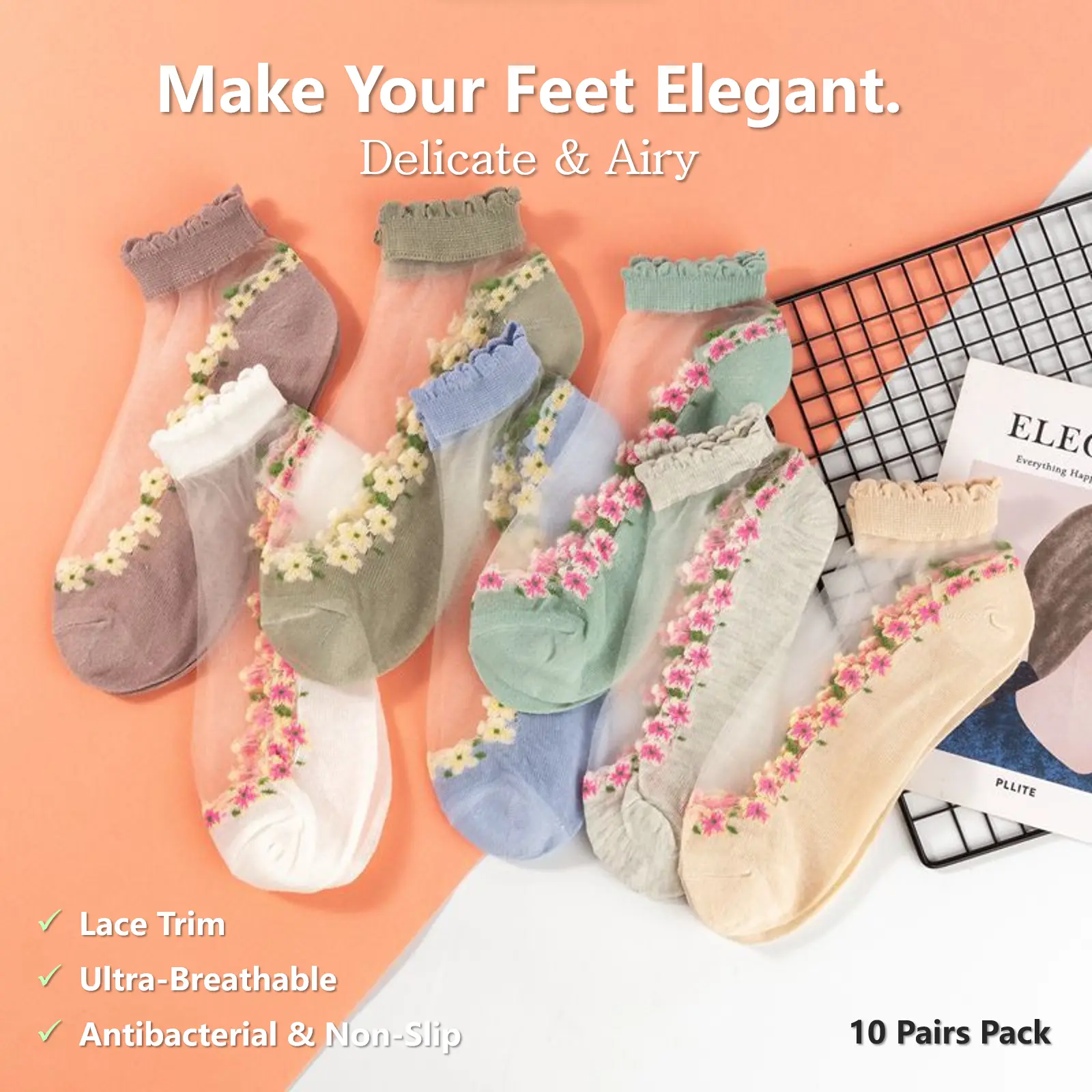 10 Pairs – 1 Packs (All 7 Colors + 3 Random), One Size