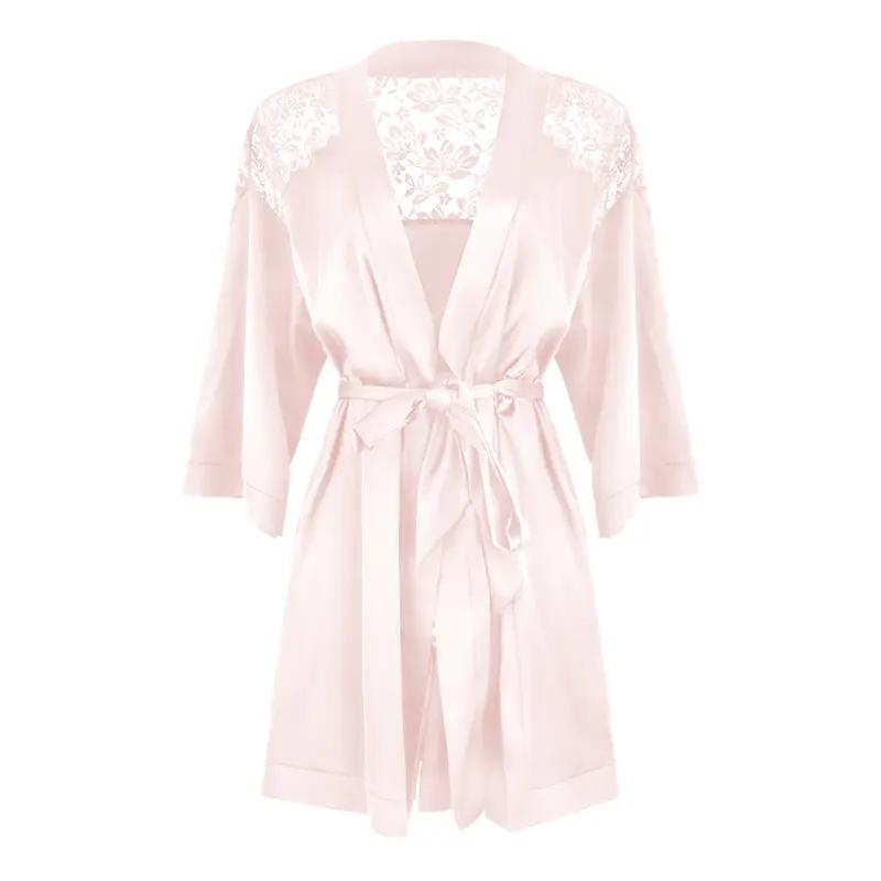 ·Long Sleeve Satin Robe – Lightweight, smooth, and finished with lace trim