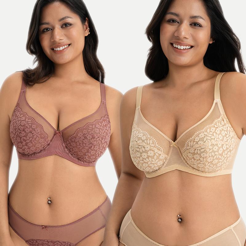 [2PCS SET]Lacsper Daisy Minimizer Bra Floral Lace Unlined & Non-Padded Plus Size Full Coverage with Supportive Under Band for All-Day Comfort