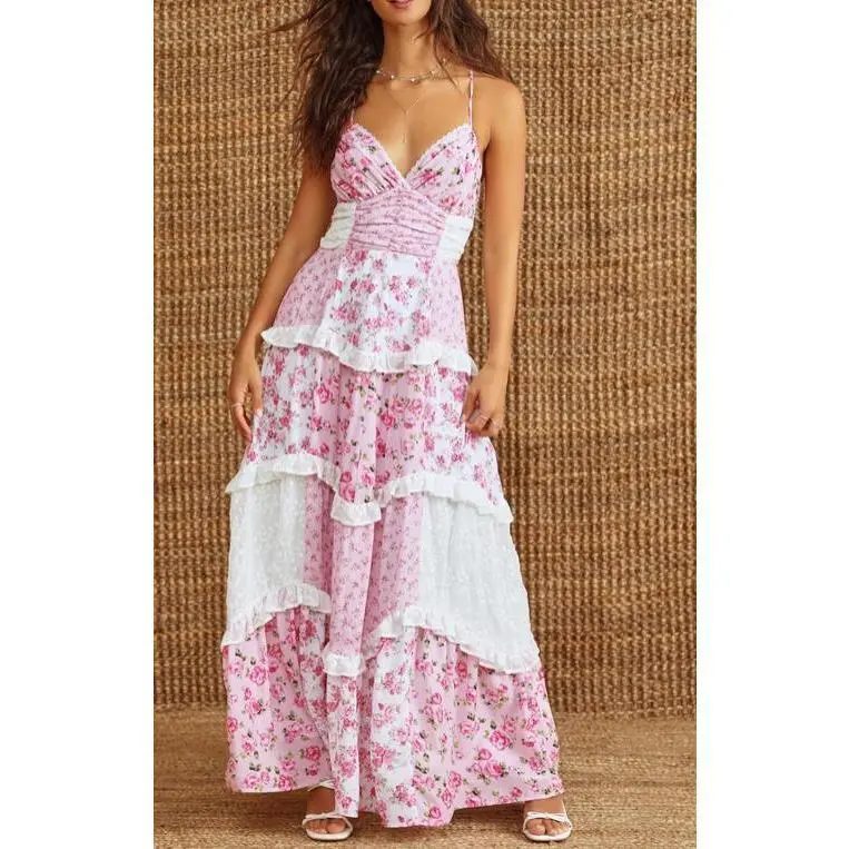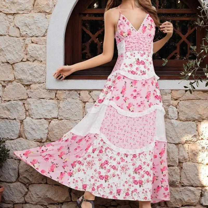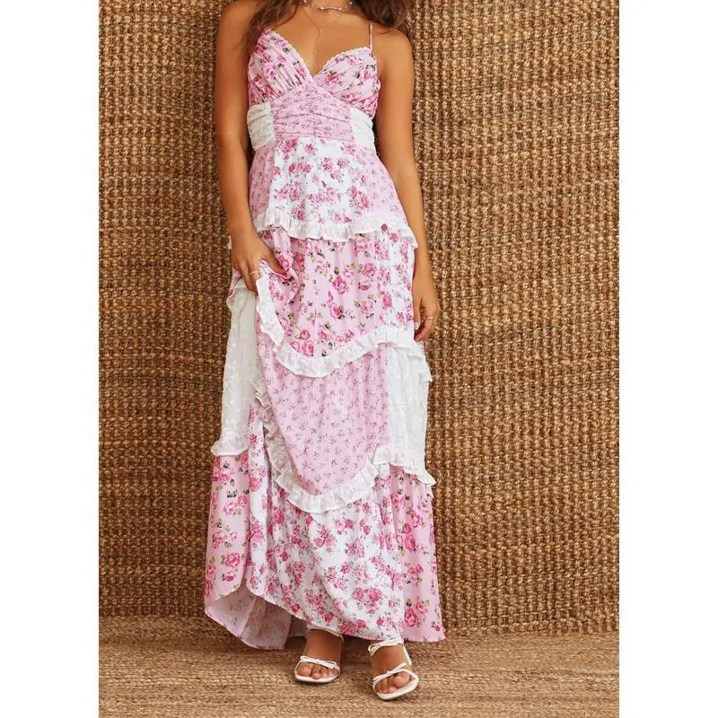 - L: Bust 36-38 inches, Waist 29-31 inches, Hips 38-40 inches Whether you're heading to a summer BBQ, a beach party, or a night out with friends, this dress is the perfect choice. Pair it with sandals for a casual daytime look or dress it up with heels for a night on the town. The versatile design of this dress makes it easy to style for any occasion. Don't miss out on this must-have summer dress! Treat yourself to a dress that will make you feel beautiful and confident wherever you go. Add our Floral Lace Patchwork Spaghetti Strap Dress to your cart today and get ready to make a statement in style!