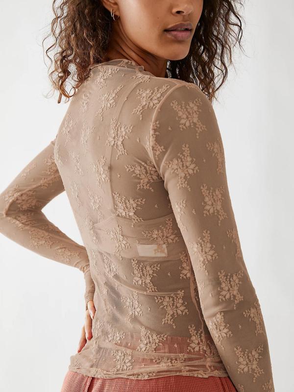 Women's Floral Lace Sheer Cover Up Top, Beach Cover Ups, Casual Long Sleeve Top for Beach Holiday Vacation, Ladies Clothes for All Seasons