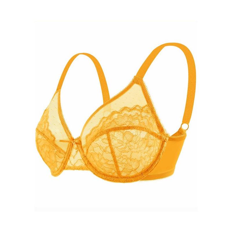 Bra arrived quickly. Bought 34H, wish they had 34I because cup doesn't seem deep enough or provide enough coverage. Also wish this provided more support. Color is great and it's comfy, won't be wearing with T-shirts due to lace and moderate support. Most likely be for weekends or lounging.
