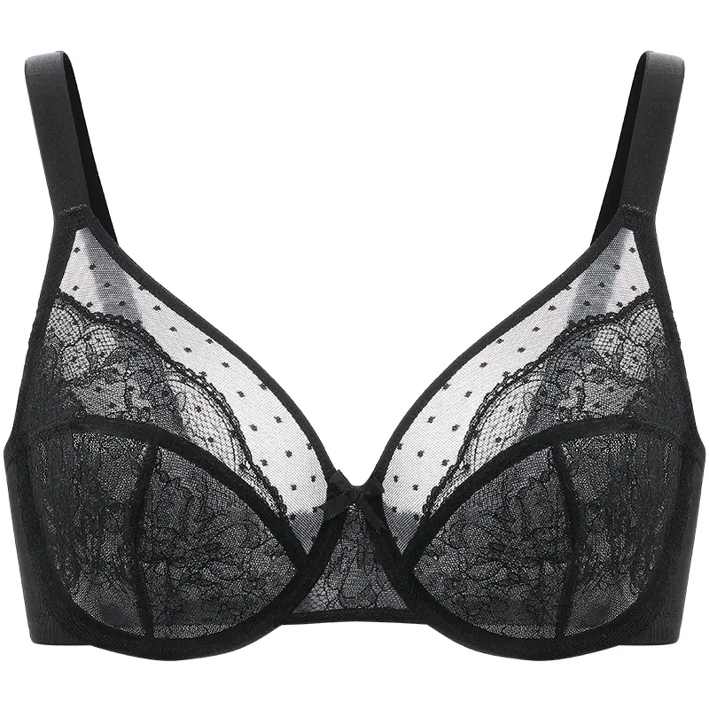 ·Feather-Light Luxury: Airy mesh cups with delicate lace overlay provide full coverage without bulk. Feel barely-there lightness against your skin.