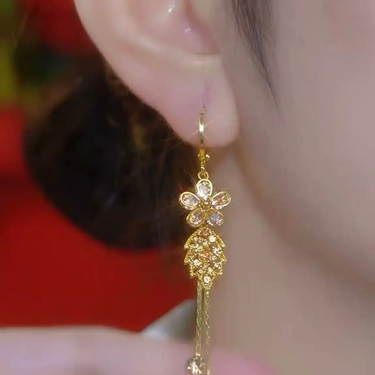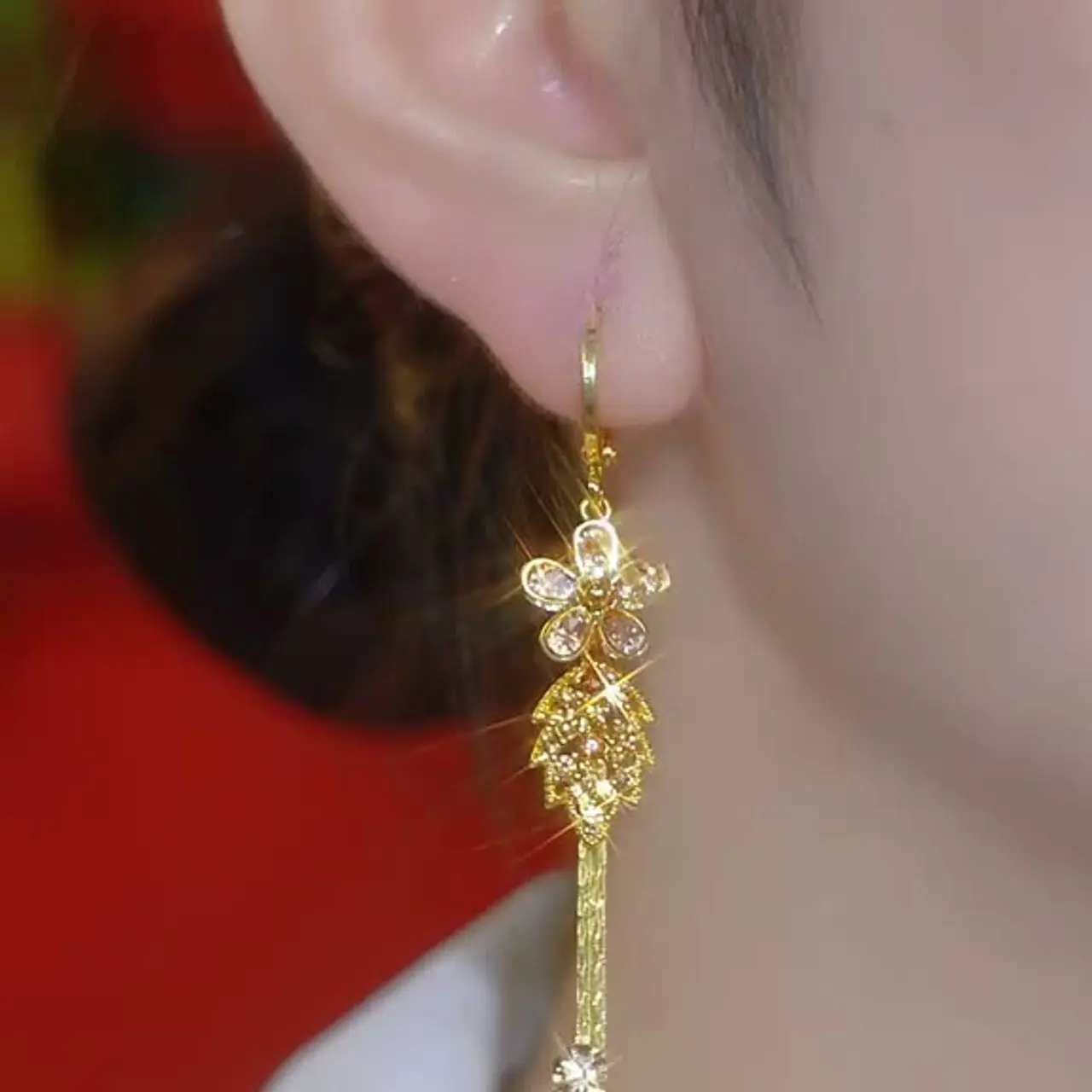 5. LisiZen Floral Leaf Tassel Earrings 14K Gold Plated Sparkling Zircon Design, Chic Statement Jewelry Unique Fashion Earrings New Arrival DZEH2601 SpringStatements