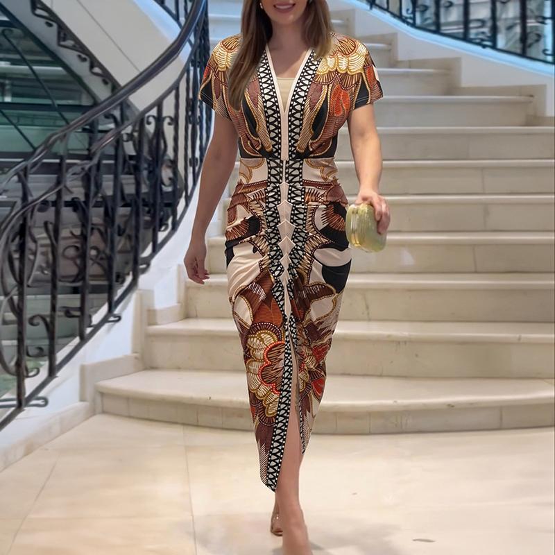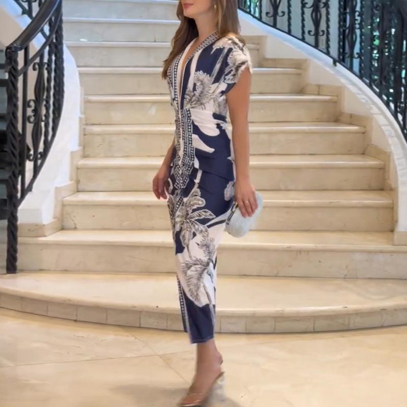 ·Flattering V-Neck & Short Sleeves – The deep V-neckline elongates the neck and highlights your collarbone, while the short sleeves provide a balanced, effortlessly chic look.