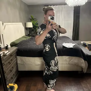 ·Elegant Floral Print Design – This midi dress features a timeless black, beige, and white floral print, blending vintage charm with modern sophistication, perfect for both casual and dressy occasions.