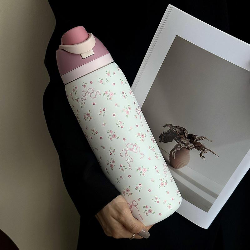 1pc Floral Pattern Insulated Double Wall Stainless Steel Sports Bottle, 24oz-32oz-40oz Sizes, Travel Cup with Straw Design for Gym School Travel, Thermo Tumbler, Insulated Water Bottle
