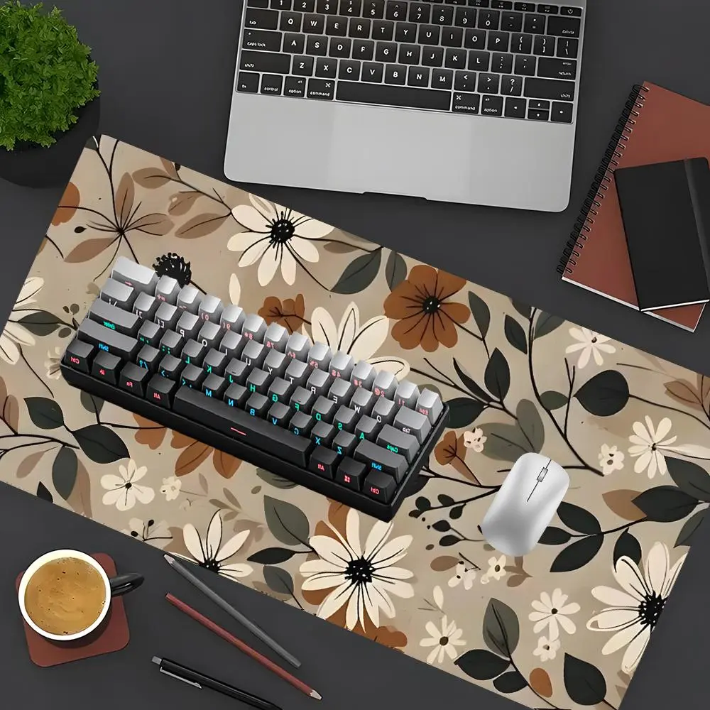Floral Pattern Mouse Pad, Rectangle Gaming Mouse Pad, Non-slip Rubber Base Mousepad, Office Desk Keyboard Mouse Mat for Home Office Game Room Desk, Desk Accessories