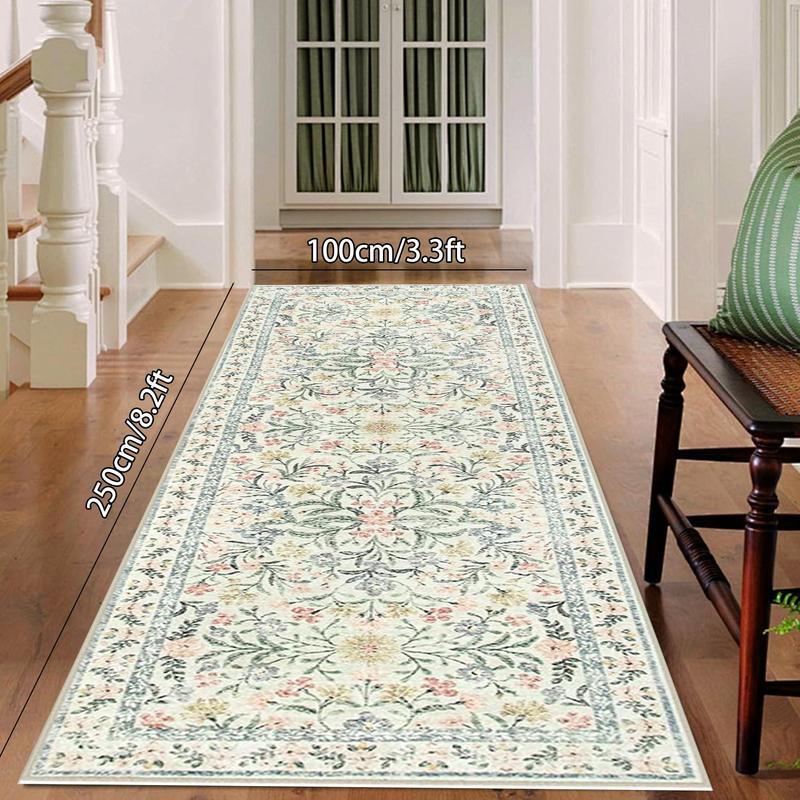 Floral Pattern Runner Rug, Non-slip Soft Floor Mat, Decorative Carpet for Home Living Room Bedroom Dining Room, Boho Runner Rug, Floral Area Rug, Home Decor