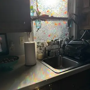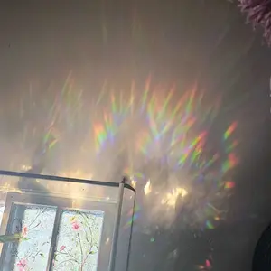So pretty!!! Makes the prettiest rainbows when the sun hits!! đ! Fast shipping! Itâs a static cling type! So wipe the window down then stick it straight on! No sticky residue! If itâs not sticking just put a tiny bit of water on it and youâre all good!!! Obsessed!!! I want all my windows done now