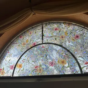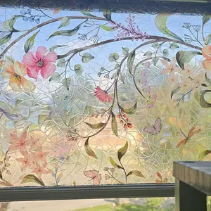 ăTransform Your Windowsă: Add a touch of elegance and color to your home with our floral pattern window sticker, featuring a vibrant, patchwork design that brings a fresh and artistic flair to various room.