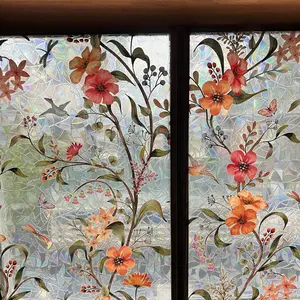 Floral Pattern Window Sticker, Removable Static-Cling Window Decal, DIY Decorative Sticker for Home Living Room and Bedroom #GLOBAL PICKS