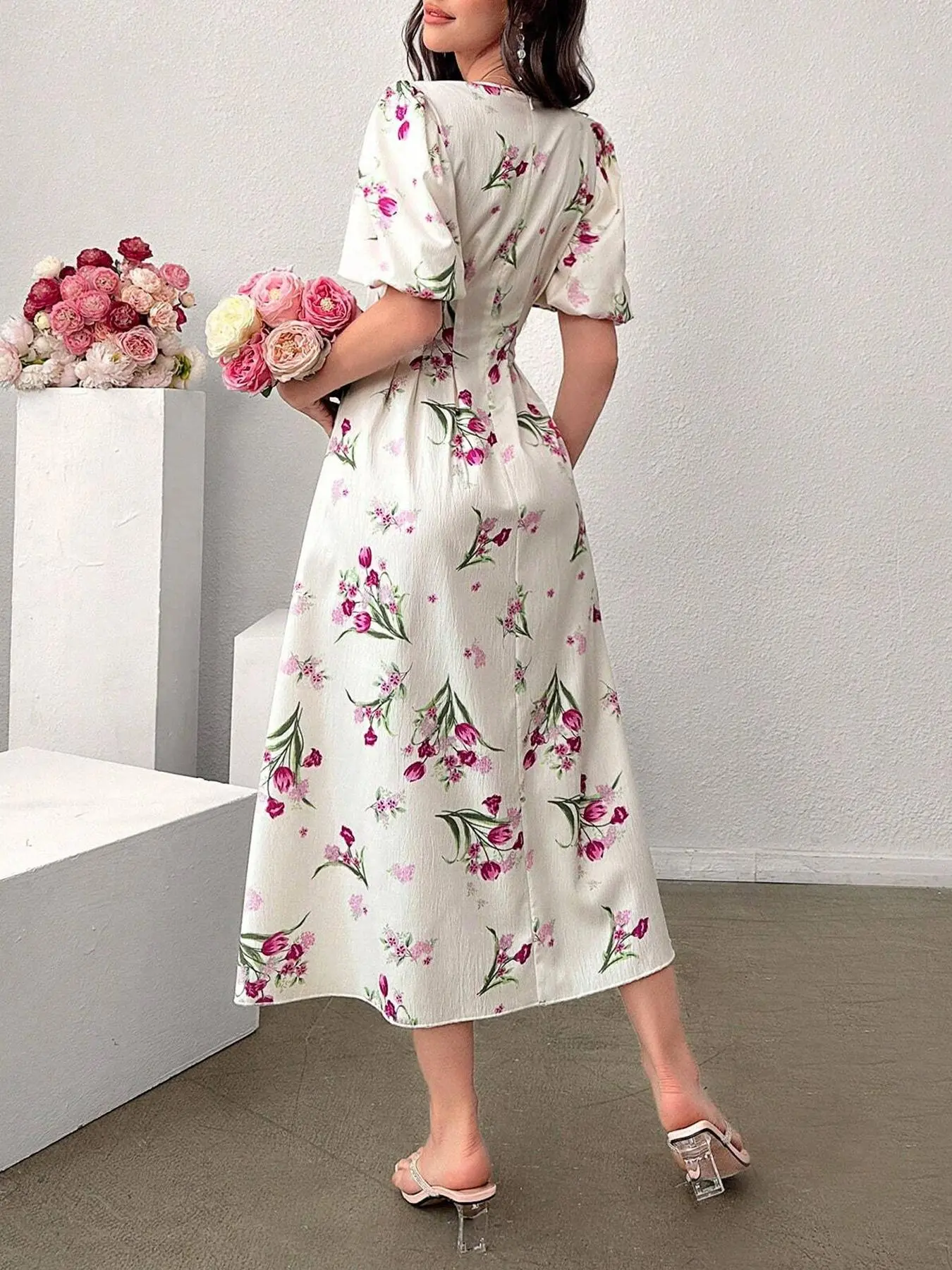 Women's Floral Print Puff Sleeve Dress, Elegant Short Sleeve A Line Dress for Party Holiday Wedding Guest, Ladies Clothes for All Seasons, Womenswear, Shortsleeve #dresses #fashion #women #womensfashion #Tiktokshop #trending #fyp #viral #foryou #usa #shopping #TikTokFashion