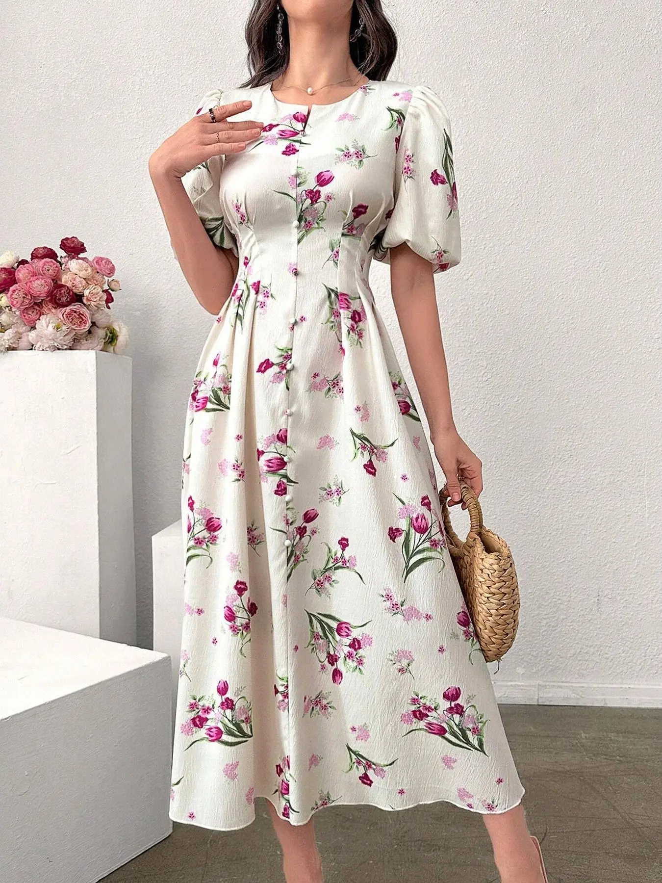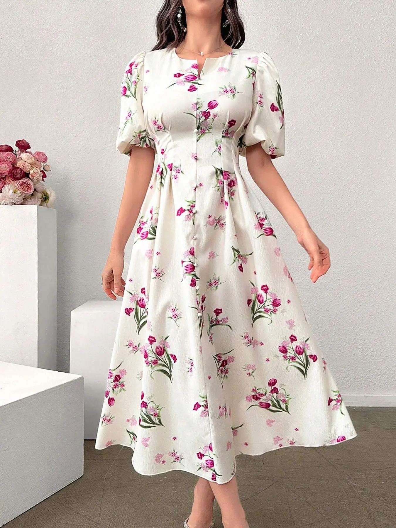 Women’s puff sleeves floral dress #summersfinalsprint #dress #puffsleevedress #womensdress