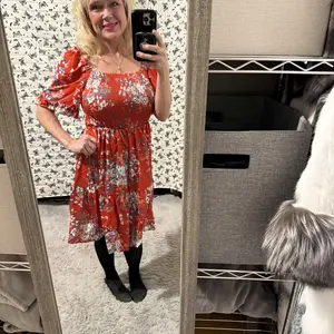 This dress is beautiful! The colors are vibrant and the dress length is great - to the knee. I really like it a lot. I have it featured in my showcase and I also posted a shoppable video on it. https://www.tiktok.com/t/ZP8qwNdrQ/
