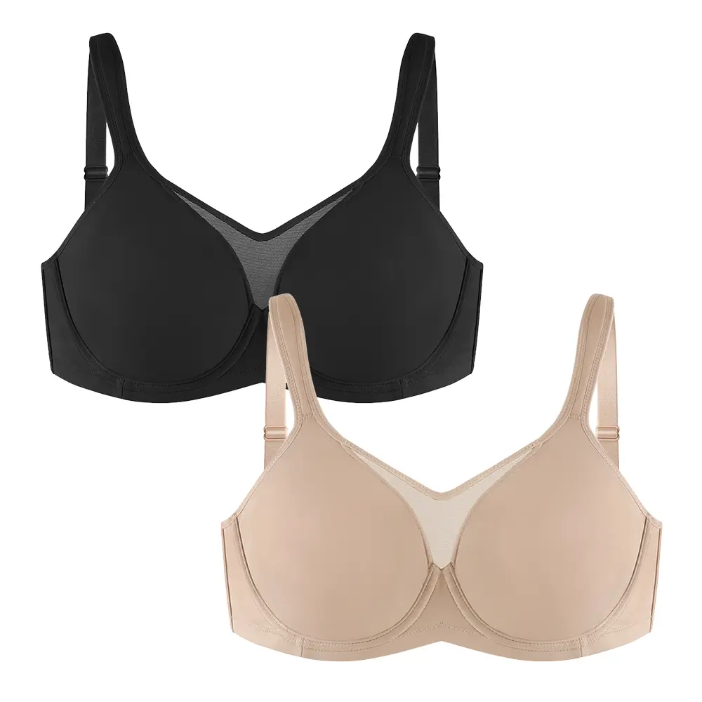 The HSIA minimizer bras feature soft, two-ply cooling fabric that is gentle on your skin, ensuring all-day comfort. The stylish mesh detailing at the center front offers a sexy look while providing lift and coverage, keeping everything in place without spillage.